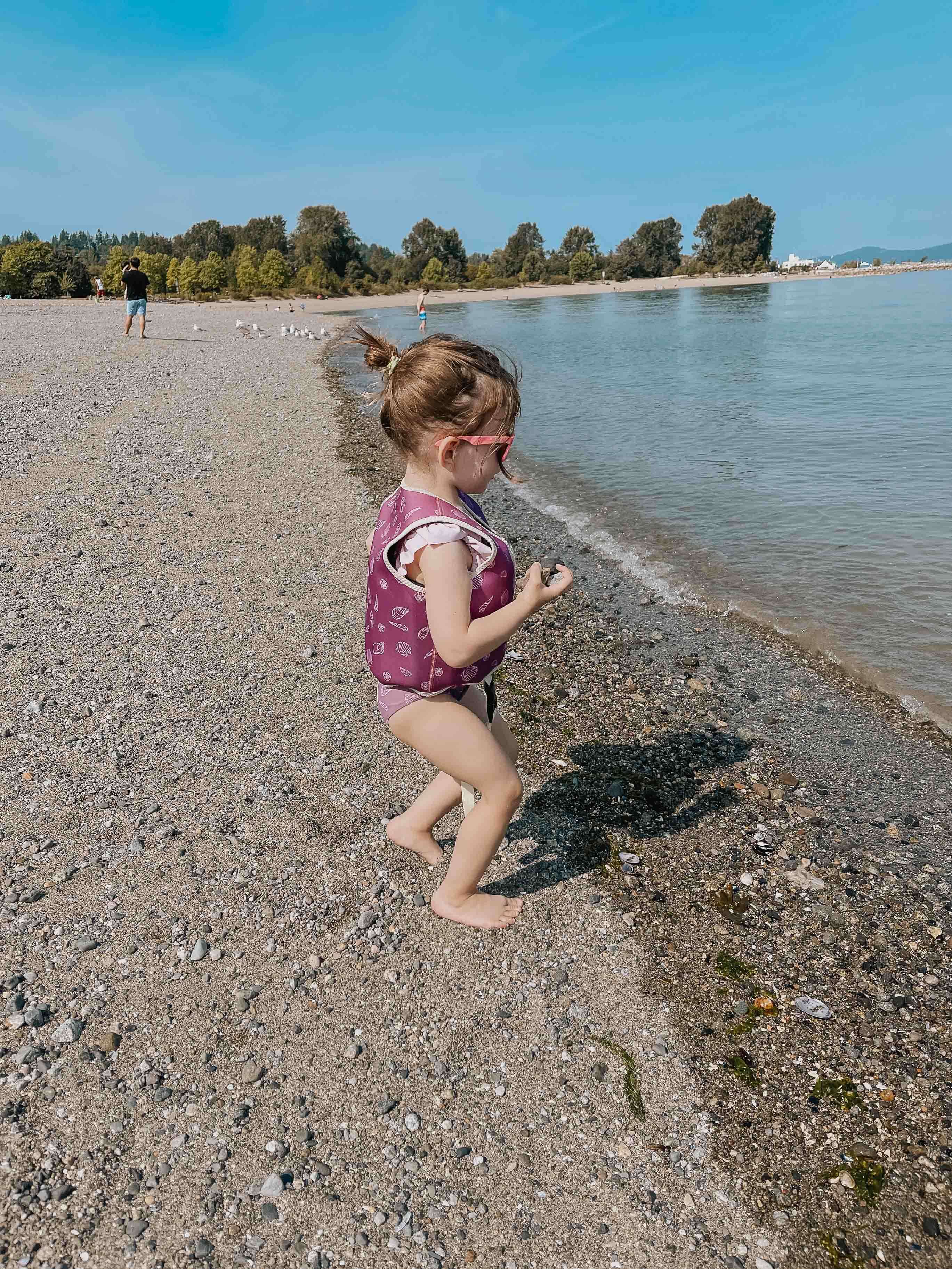We love to walk around Lost Lagoon, point out the turtles sunbathing, visit the Vancouver Aquarium, splash around in the outdoor pool, and visit a couple of playgrounds before walking into the Rose Garden. You can take the seawall and end your journey in English Bay.