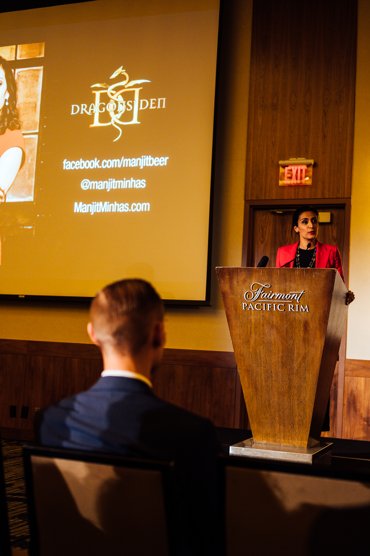 The fireside chat was followed by an inspiring keynote made by Manjit Minhas, a successful entrepreneur in the beer business and many other industries. She is also a Dragon on CBC’s Dragons’ Den! She gave an eloquent keynote, sharing her success story and the importance of having a mentor.