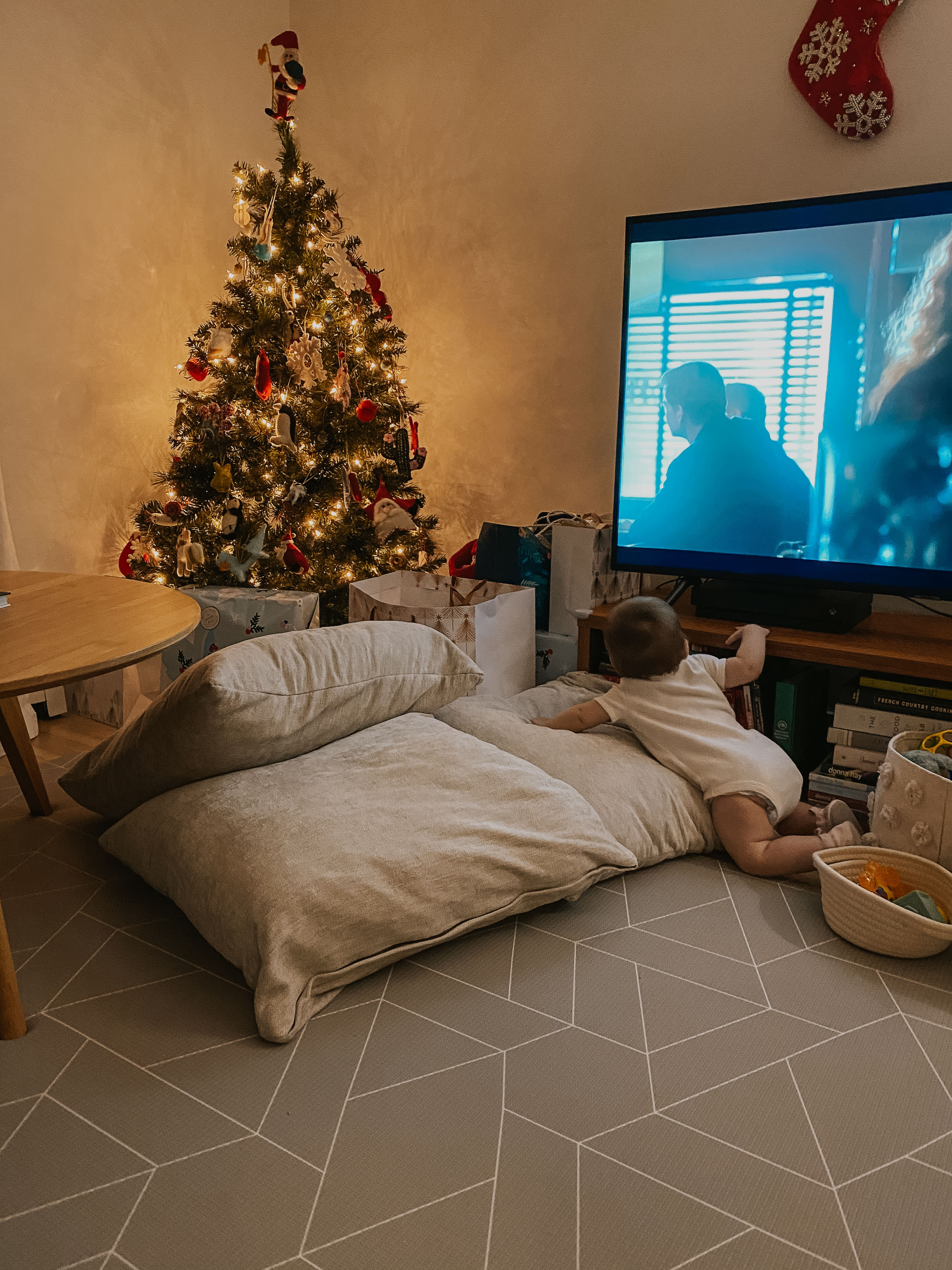 This was cute – I especially loved the pillow barricade you put up in front of the tree for Rowan! LOL