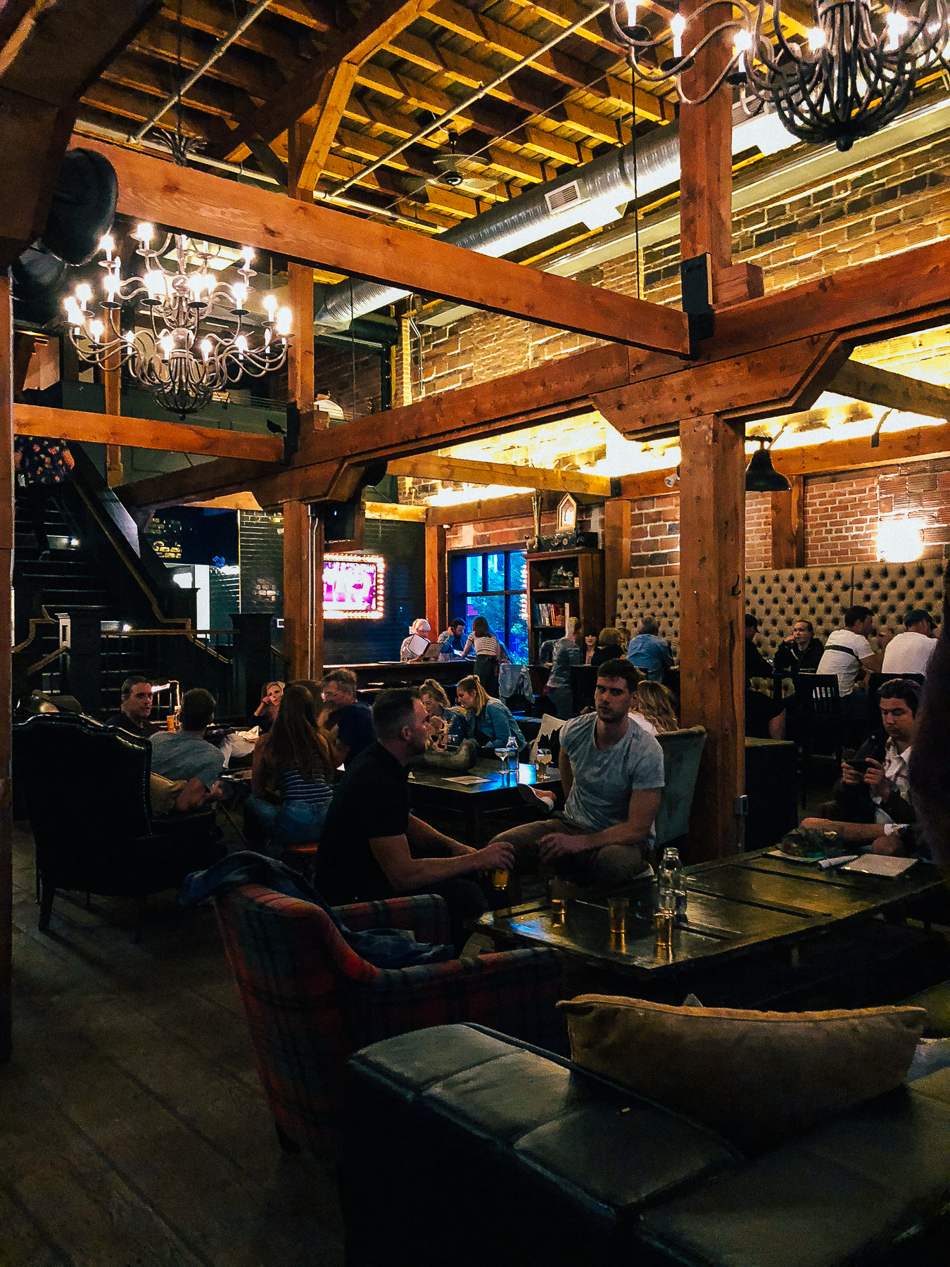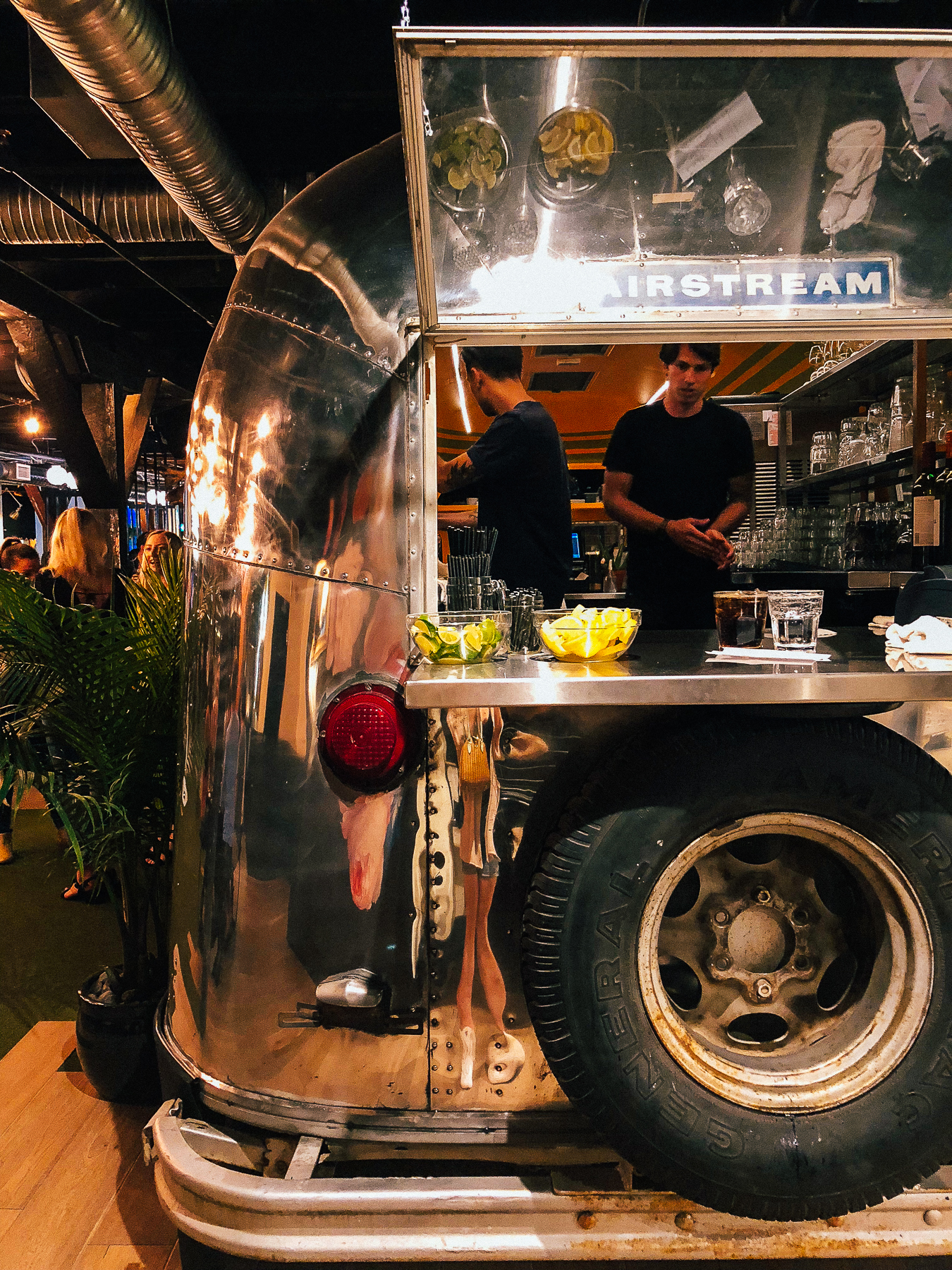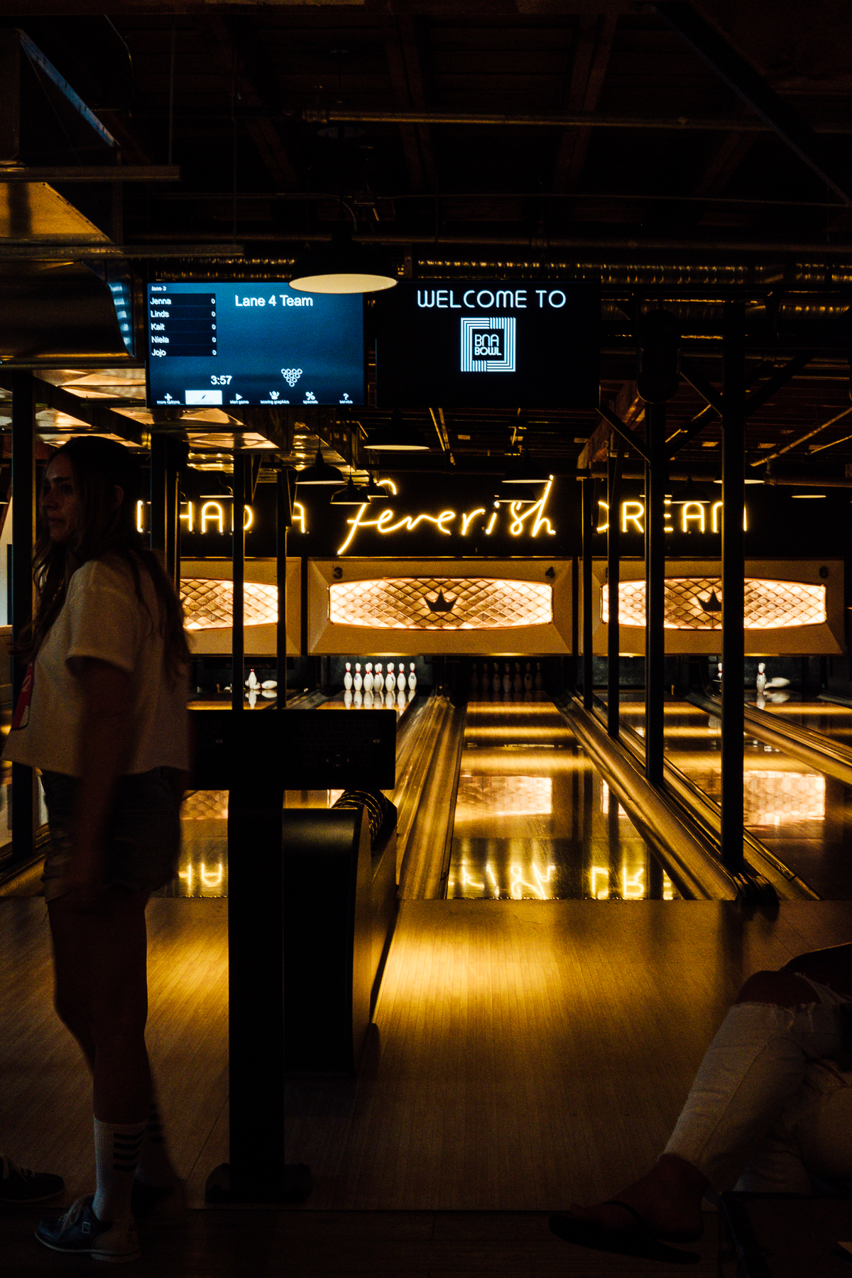 We then enjoyed dinner inside. It’s such a cool, open bustling space, with a huge dining hall downstairs and upstairs it continues with an airstream bar, bocce court, arcade games, and a bowling alley! We enjoyed a couple of appetizers such as tuna tartare and mushrooms on toast. Then I ate our main dish without photos (I know, the ultimate blogger sin) the sausage pizza which was sooooo good! Curtis described it as lasagna on a pizza and OMG I still dream about it.