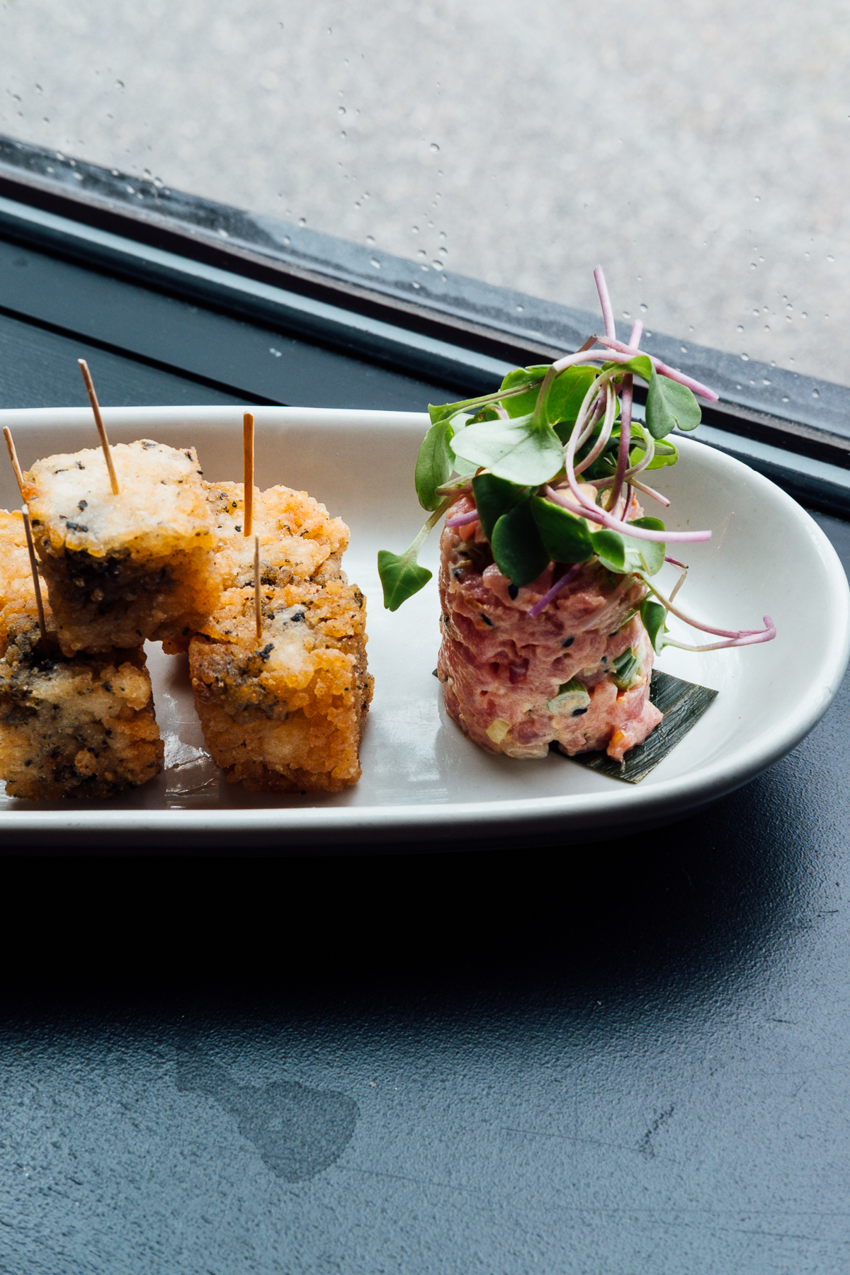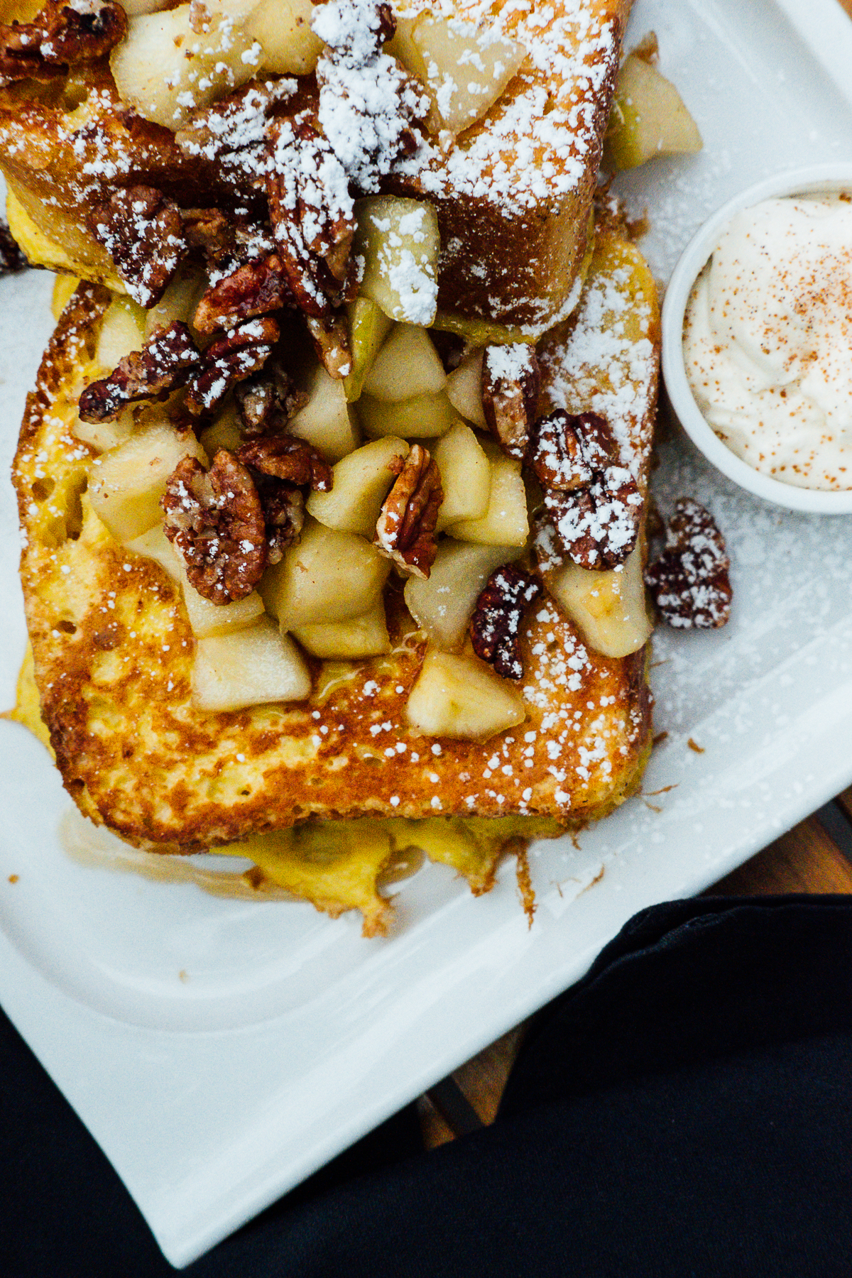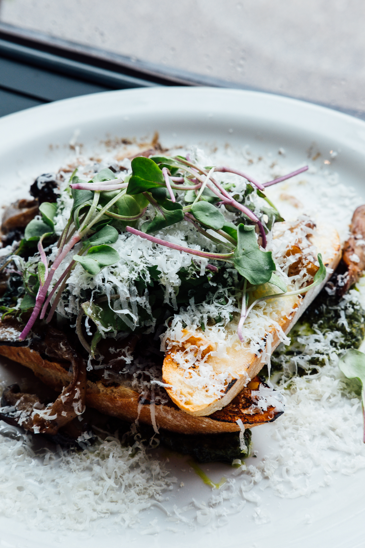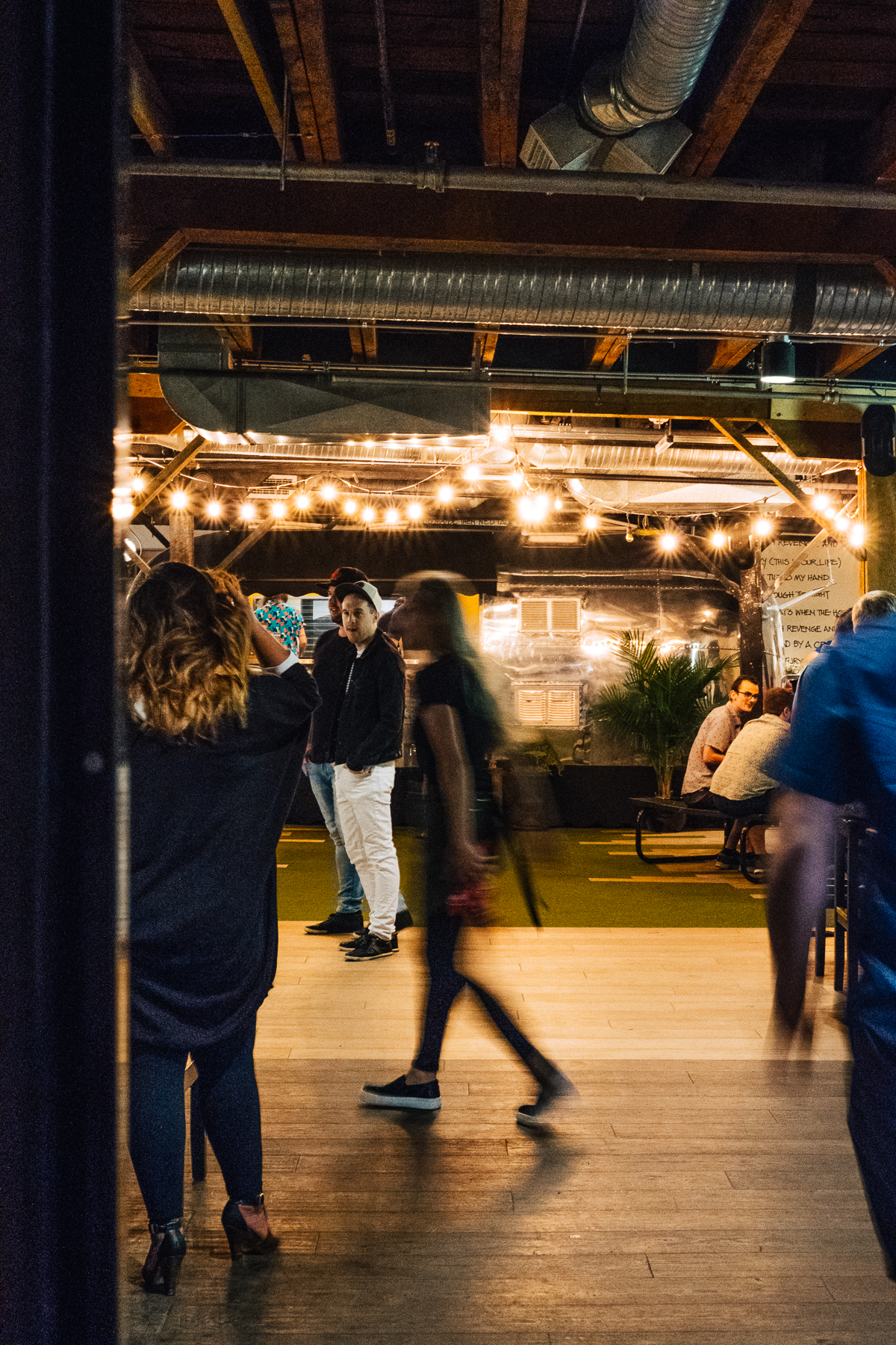 We then enjoyed dinner inside. It’s such a cool, open bustling space, with a huge dining hall downstairs and upstairs it continues with an airstream bar, bocce court, arcade games, and a bowling alley! We enjoyed a couple of appetizers such as tuna tartare and mushrooms on toast. Then I ate our main dish without photos (I know, the ultimate blogger sin) the sausage pizza which was sooooo good! Curtis described it as lasagna on a pizza and OMG I still dream about it.