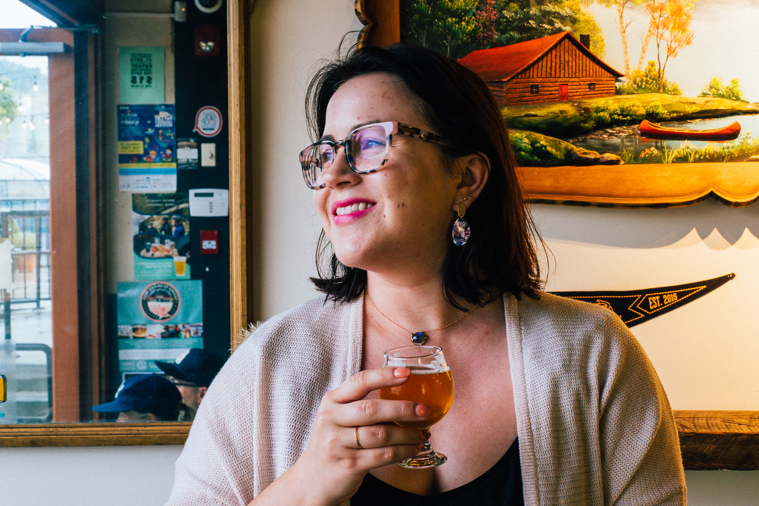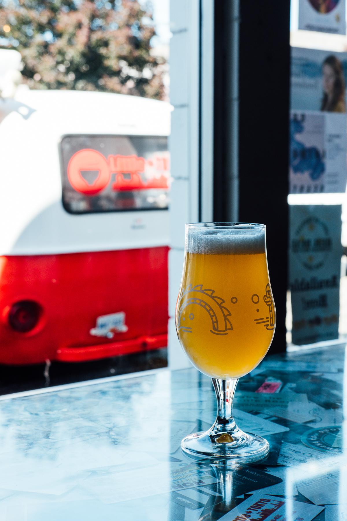 I was instantly taken with the fact they have this cute little ramen van out front with a kick-ass menu. If we didn’t have dinner reservations I would have grabbed a bowl with my beer. The tasting room and patio are really eclectic, they have open-mic nights and serve up other little snacks like pretzels.