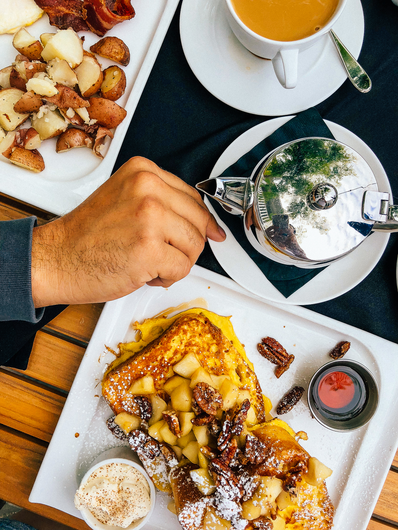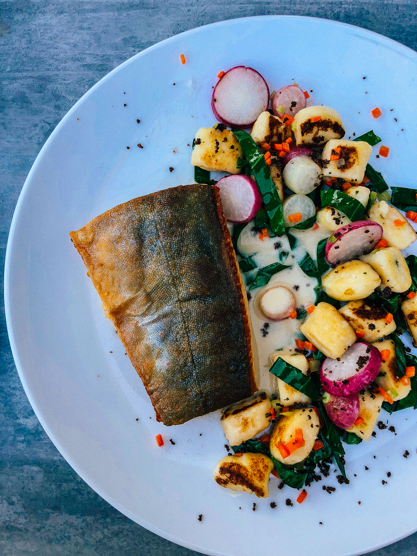This was such an amazing dinner at Waterfront Cafe and Catering! We kept saying to each other how delicious each bite was. I ordered the trout, Curtis got the lamb shank and we shared olives and a grilled fennel and cauliflower salad. And of course, we had to get dessert and it did not disappoint! This was a deconstructed tiramisu and was one of the best I’ve ever had. And that’s a bold statement being Italian. Also, the views from the patio were nice, and it’s a quick walk to the beach across the street.