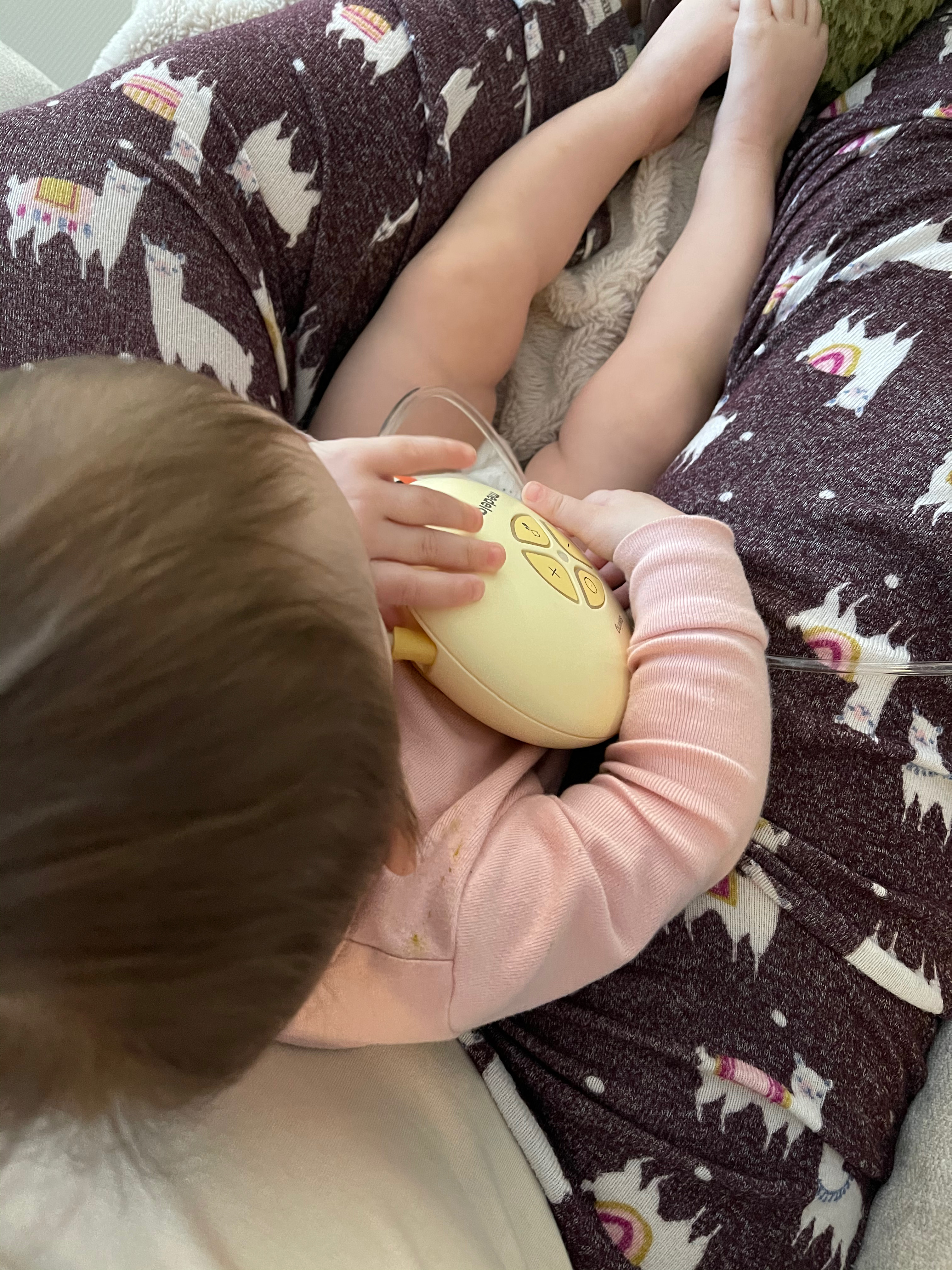 I had the inkling to take a photo of what I thought might be our last nursing session, I was right because the next morning she didn’t want to nurse. So now we hang out in mom’s lap while she pumps some mornings, and watches a cartoon.