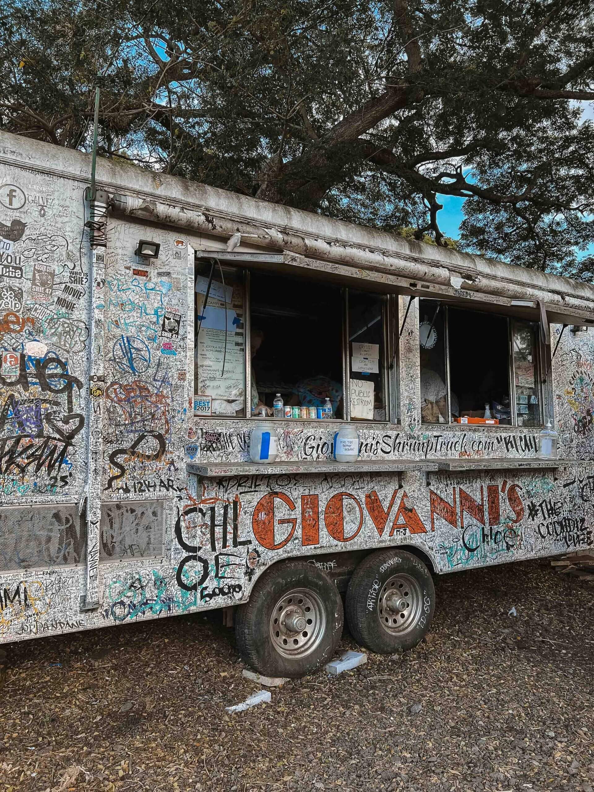 Grabbing a bite to eat at a North Shore food truck is a must when visiting O’ahu! By far, the most popular spot is Giovanni’s Shrimp Truck.