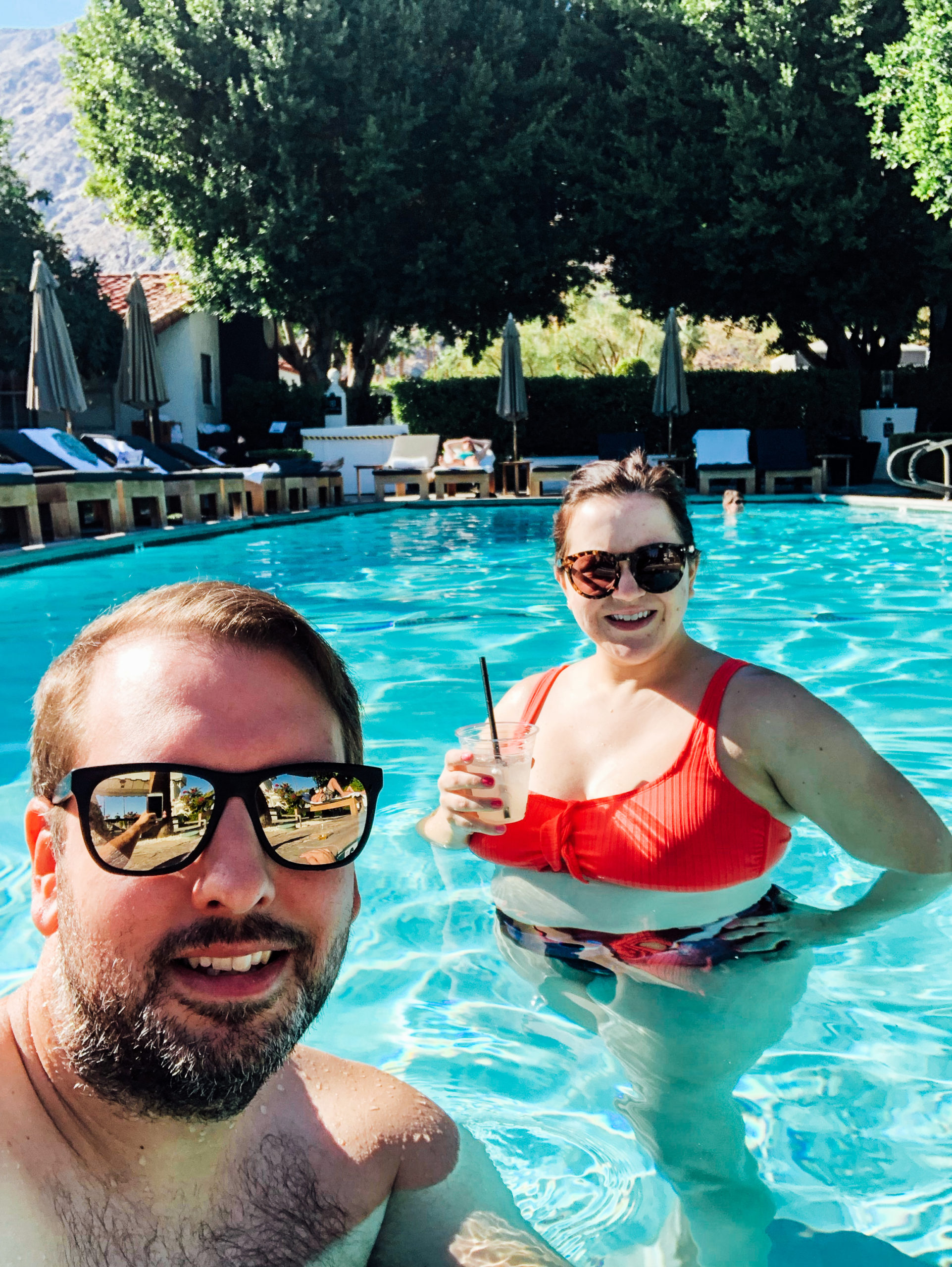 We’re always amazed at how a handful of days away from home and work can feel so inspiring and refreshing. The location couldn’t be beaten; the Avalon Hotel Palm Springs is one block off of the main drag, with that gorgeous mountain backdrop behind it. The quiet, adult only pool was our best friend in the afternoons (along with a cold beer or two for Curtis and a refreshing mocktail for me!), and every evening, they roared up a couple of fire pits for late-night conversations. It’s the place where we were married in 2017, you can see it all here.