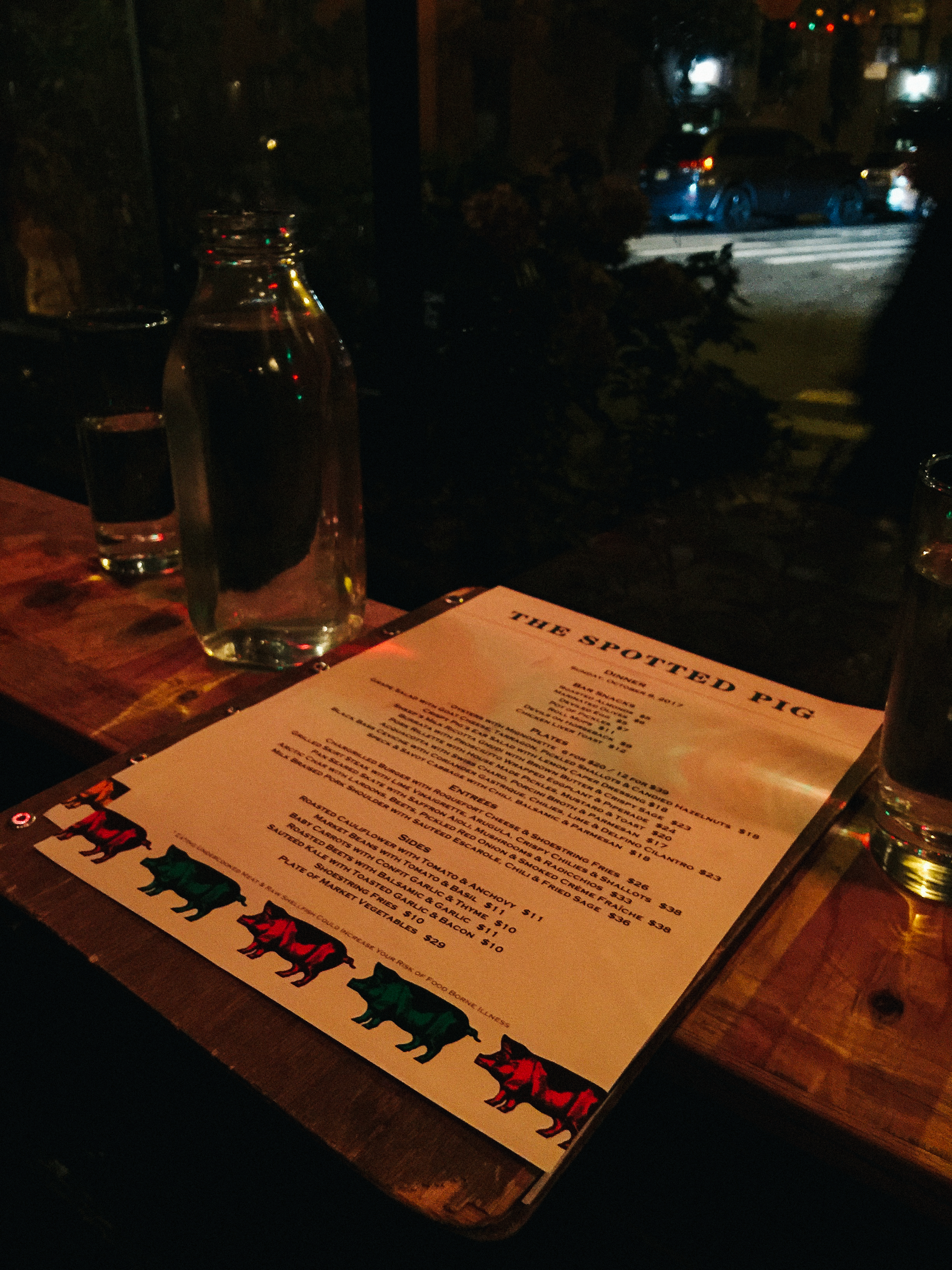 We both have always wanted to go here (fans of April Bloomfield), and it didn’t disappoint. Filled to the brim with pig memorbilia and lit in such a nice way, it’s a spot to enjoy a cocktail and share a couple of dishes. Also their playlist was on point.
