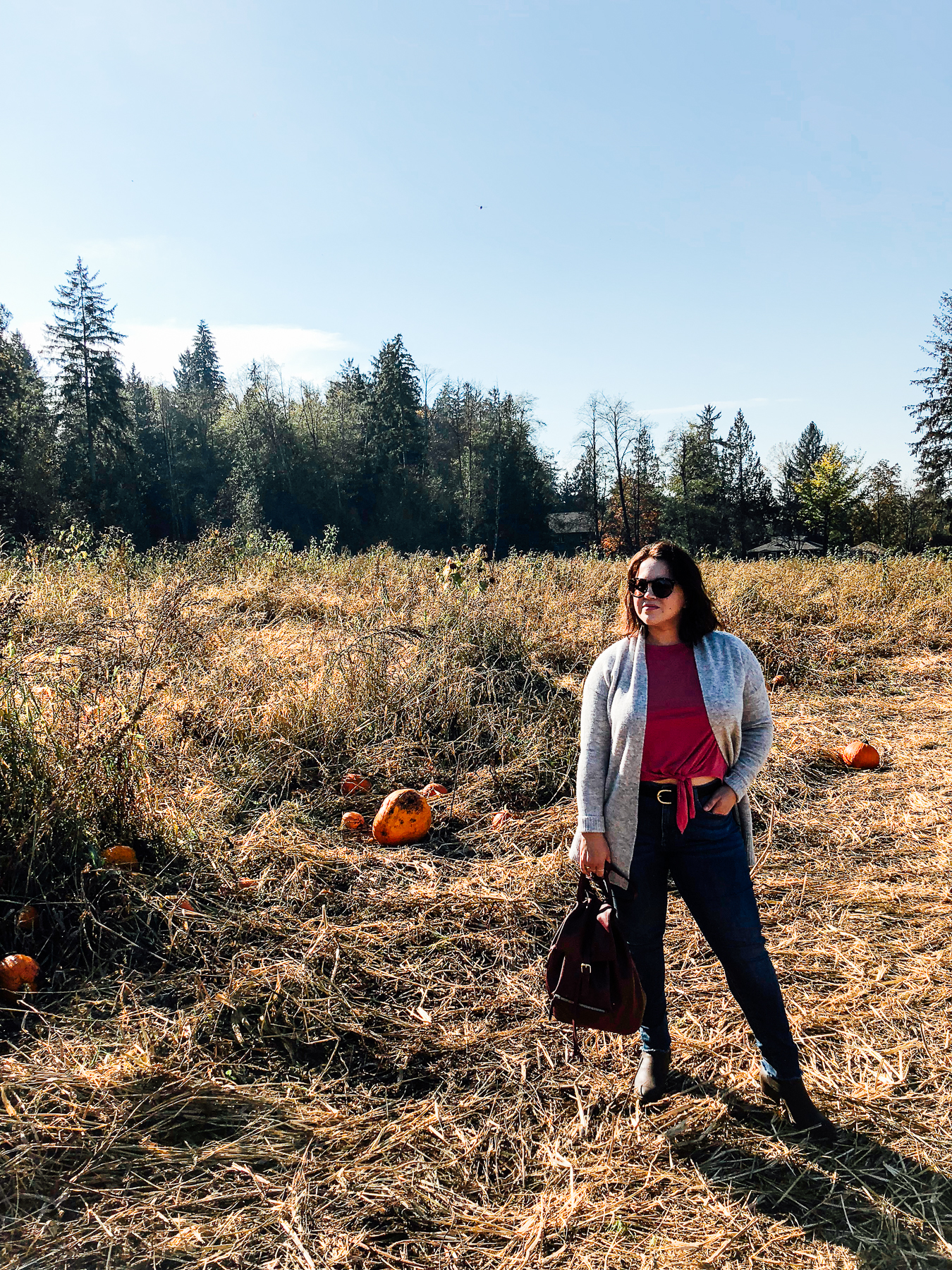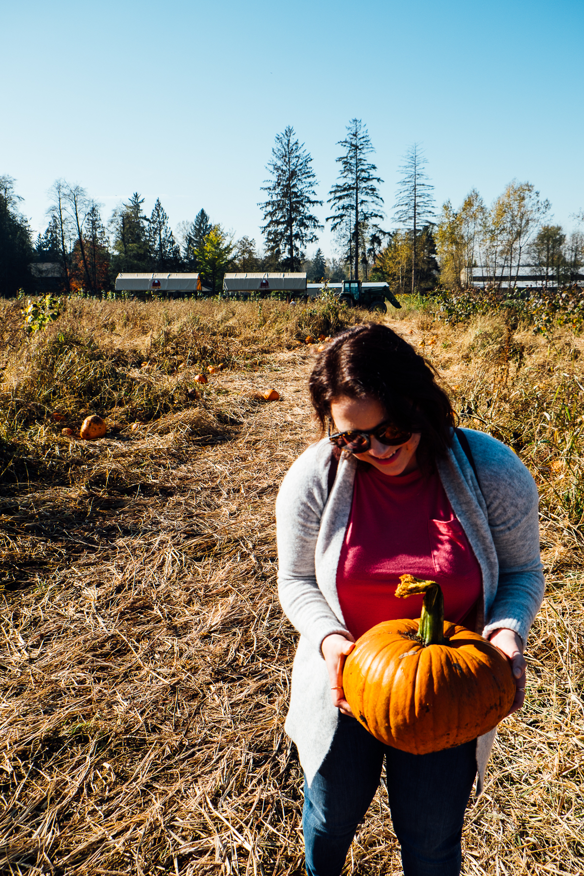 Last Sunday we drove out to the Fraser Valley in a hunt for a pumpkin patch. We initially went to a couple in Abbotsford, but each one was packed. I’m not kidding, hundreds of cars on the street because the parking lots were at capacity. So we just drove on by haha.