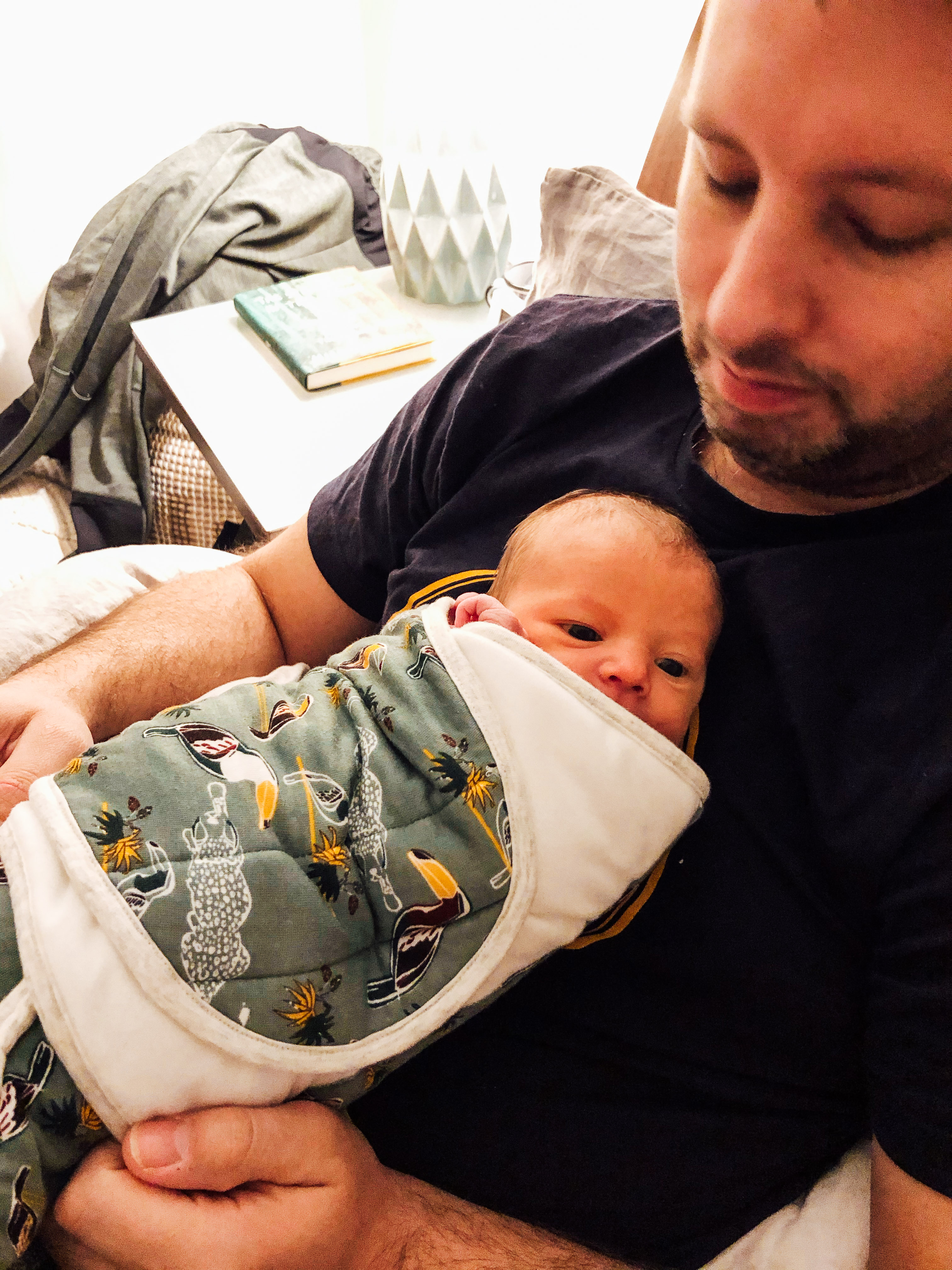 We ended up staying for three days because I had a C-Section and took advantage of recovering there with the extra help with the nurses. Curtis had to sleep on the floor unfortunately on a fold-out pad, but he was so great. He helped out with feeding, making sure I was hydrated all the time, did all the diaper changes and practiced his swaddling skills. I also have to say he was fantastic as he could be during labour, he said he felt helpless because he could only do what I asked him to and it was all me, but his encouraging words, and making sure I moved around (when I was able to) and just rubbing my back and massaging when I was contracting was so helpful. I couldn’t imagine him not being there with me.