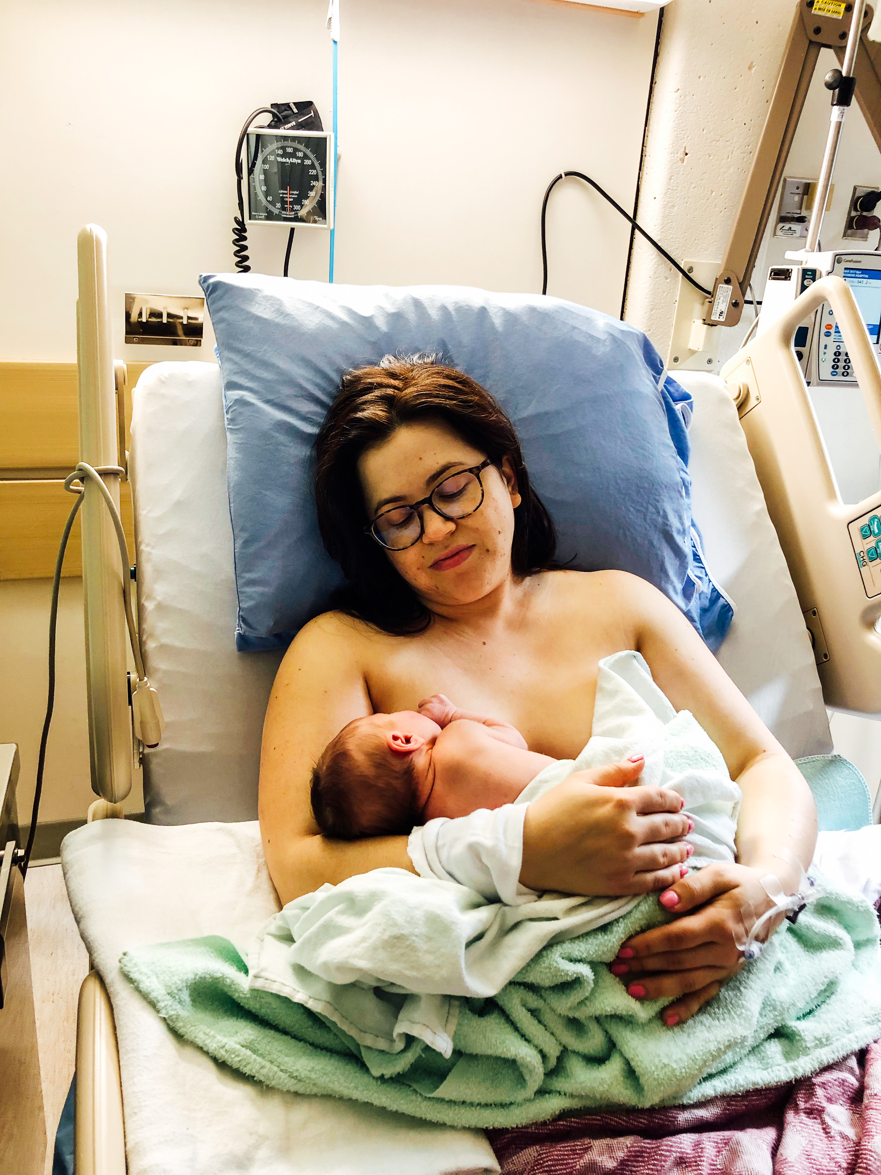 I felt ZERO pain. I could barely even tell I was contracting, it was so weird. They gave me an IV (which was my first in life, I’ve never been admitted to the hospital beforehand or even taken drugs stronger than Tylenol 3s for my wisdom teeth) and started me on Pitocin, then the contractions sped up a bit and became a bit stronger. I have a pretty high pain tolerance, so I was apparently contracting for hours and felt they were only period cramps haha, so they upped my dosage and woah I wasn’t ready for that. No transition as if I was in labour at home before active labour like most women.