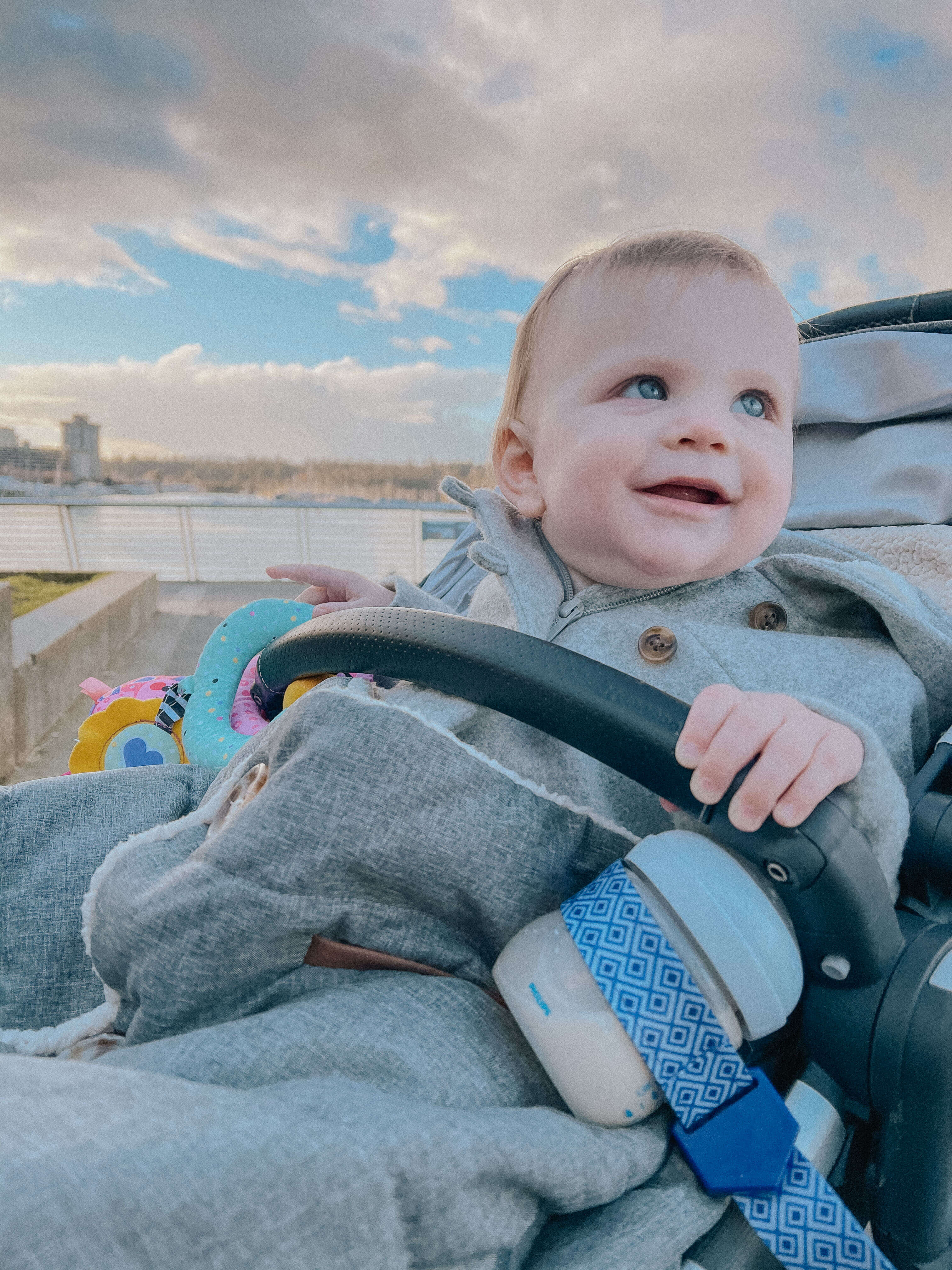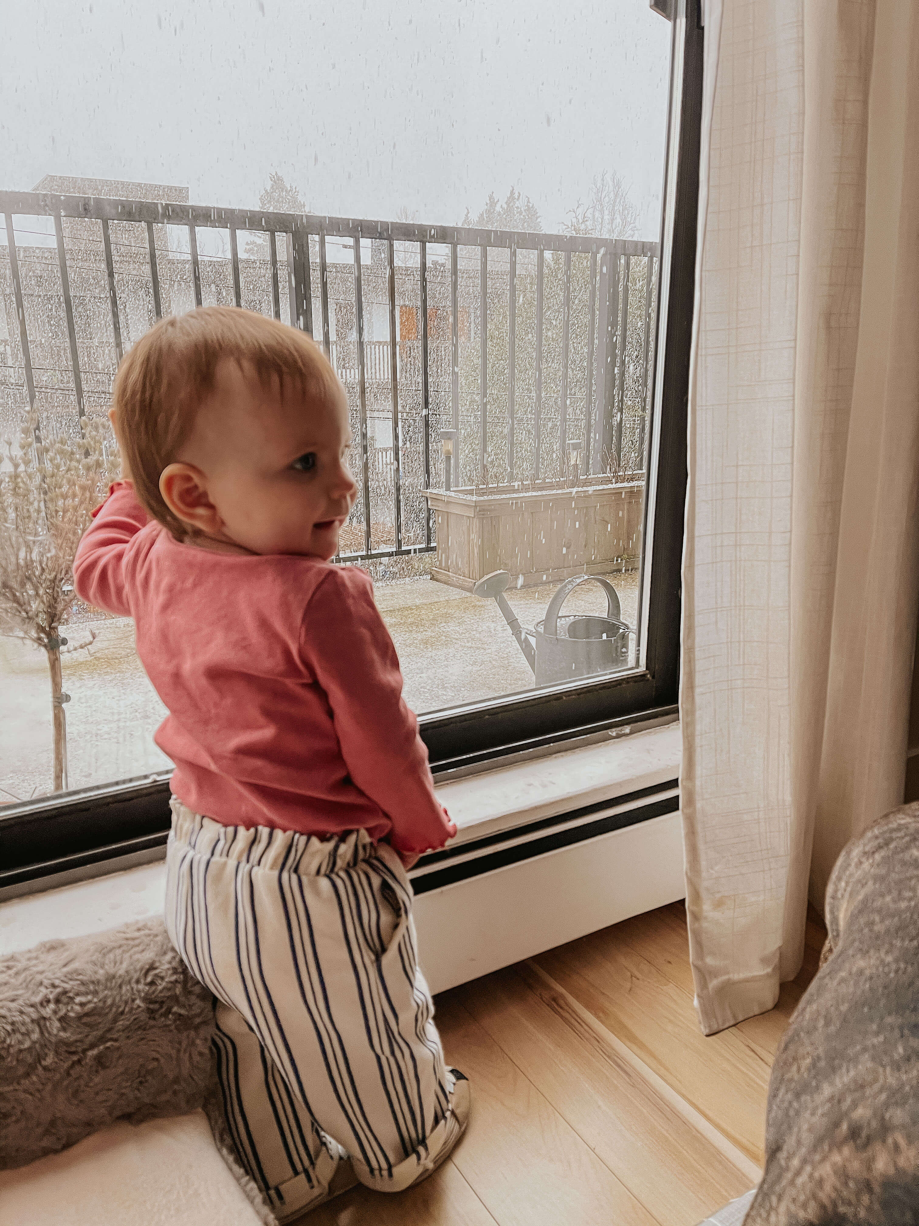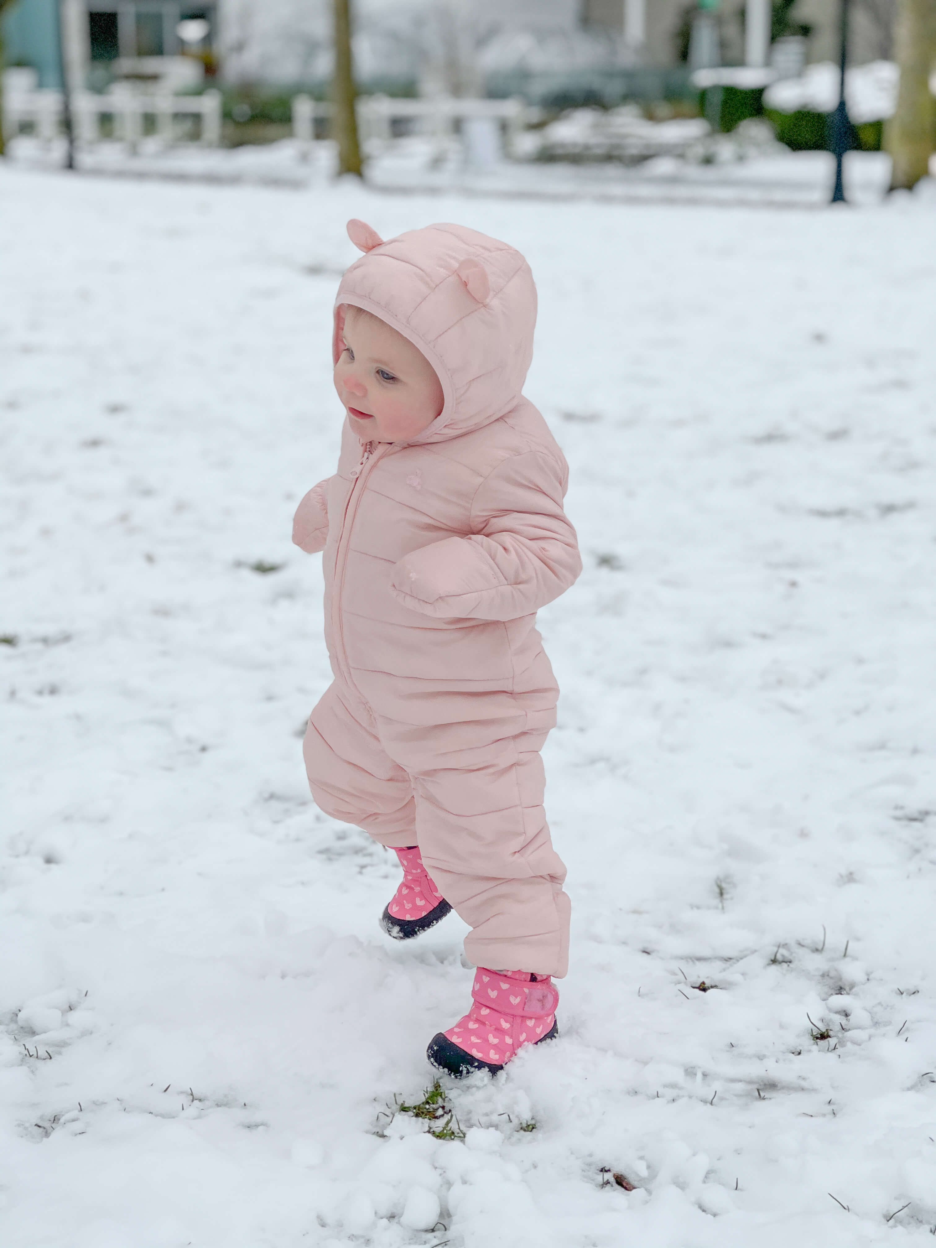 Rowan is also very into her stroller rides around our new neighbourhood, she waves and smiles and babbles doggie at any dog that comes near her. Does she try to tear her gloves off 30 seconds after I put them on? Yes, yes she does. So if anyone has a trick to keeping them on, let me know!