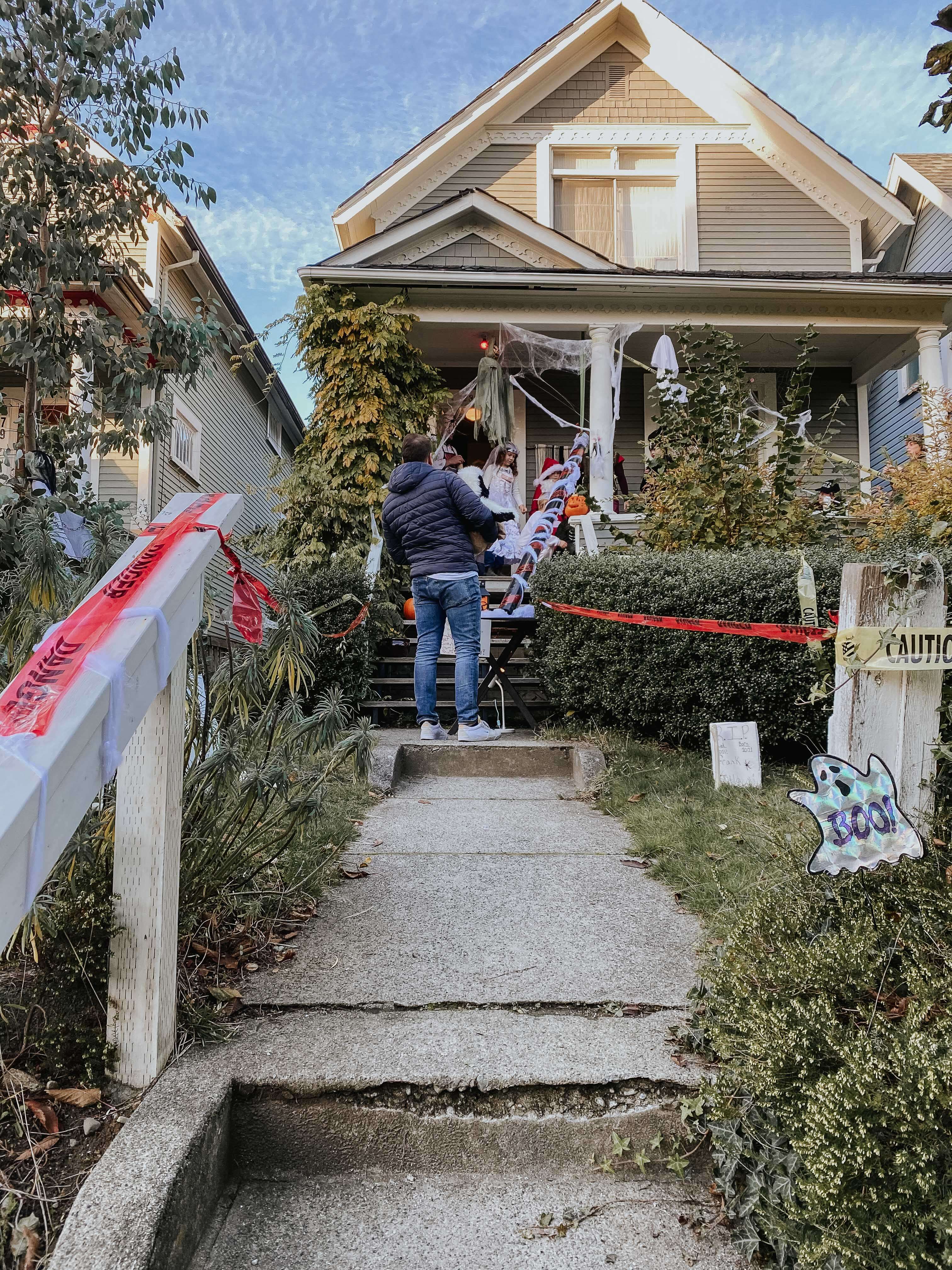 We didn’t do much for Halloween, just went for a walk in costume around the block. She did one trick or treat, this family had a chute they put the candy down. So clever!