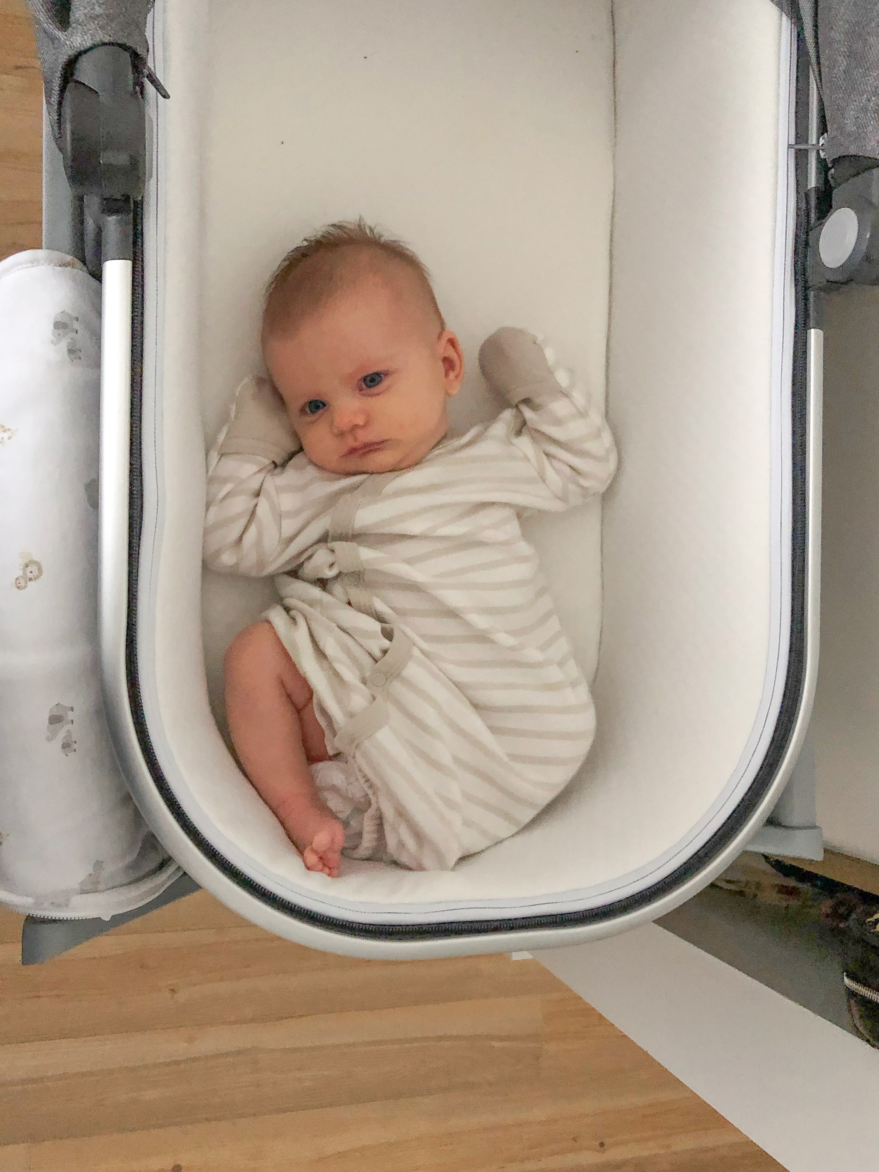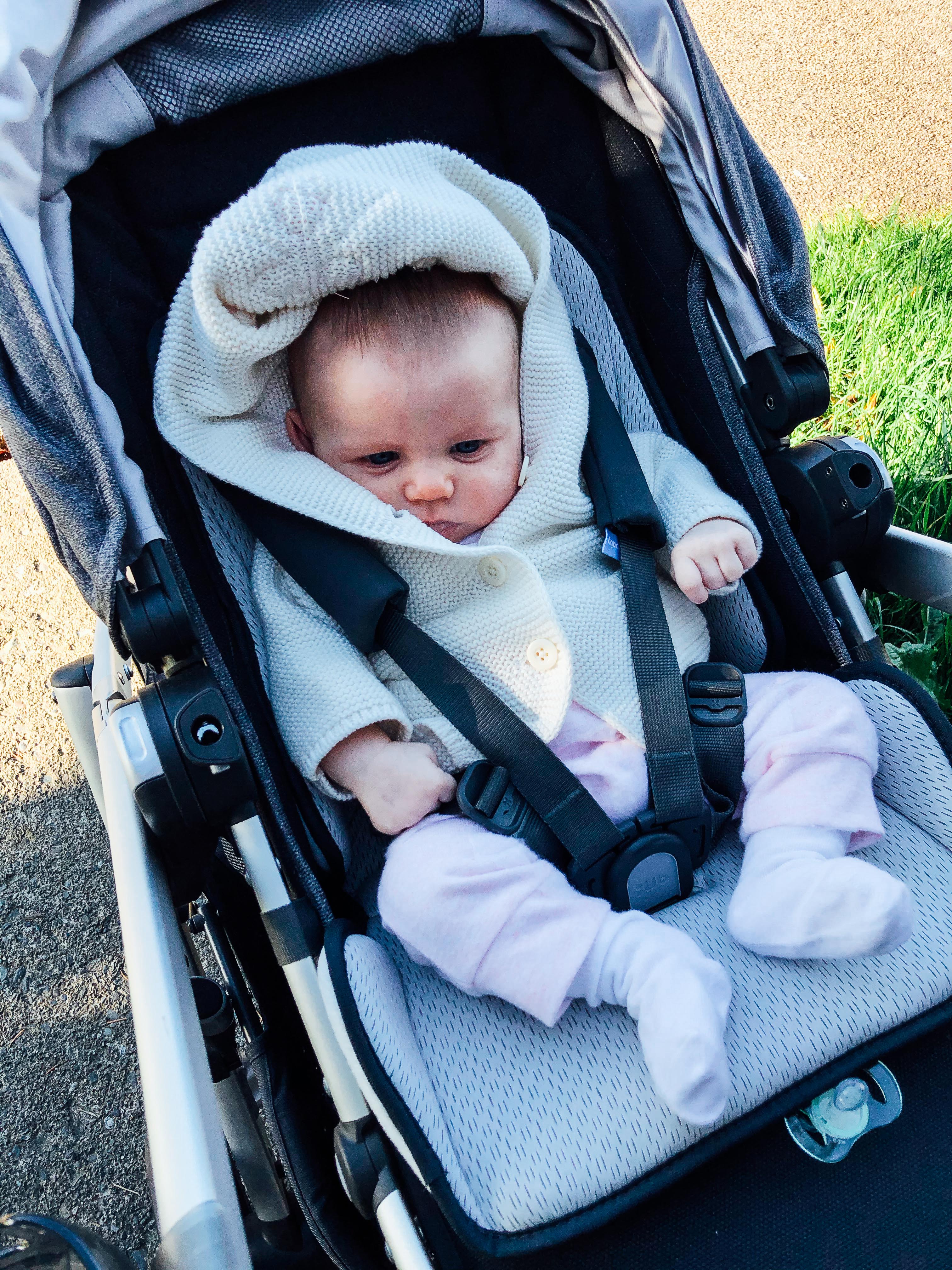 Rowan’s much more interactive – smiling at us, brushing things with her hands, getting stronger at tummy time, following things with her eyes. It’s amazing how quickly they go from a baby blob to somewhat aware of what is going on. She coos in response to us talking to her and definitely knows when she is about to be fed. If you don’t let her look around in your arms or in her little bouncy chair, she will get fussy. Another new thing is that she has been self-soothing herself lately, we can hear her in her bassinet sometimes in the middle of the night and her grunts or coos and then falls back asleep without us assisting her.