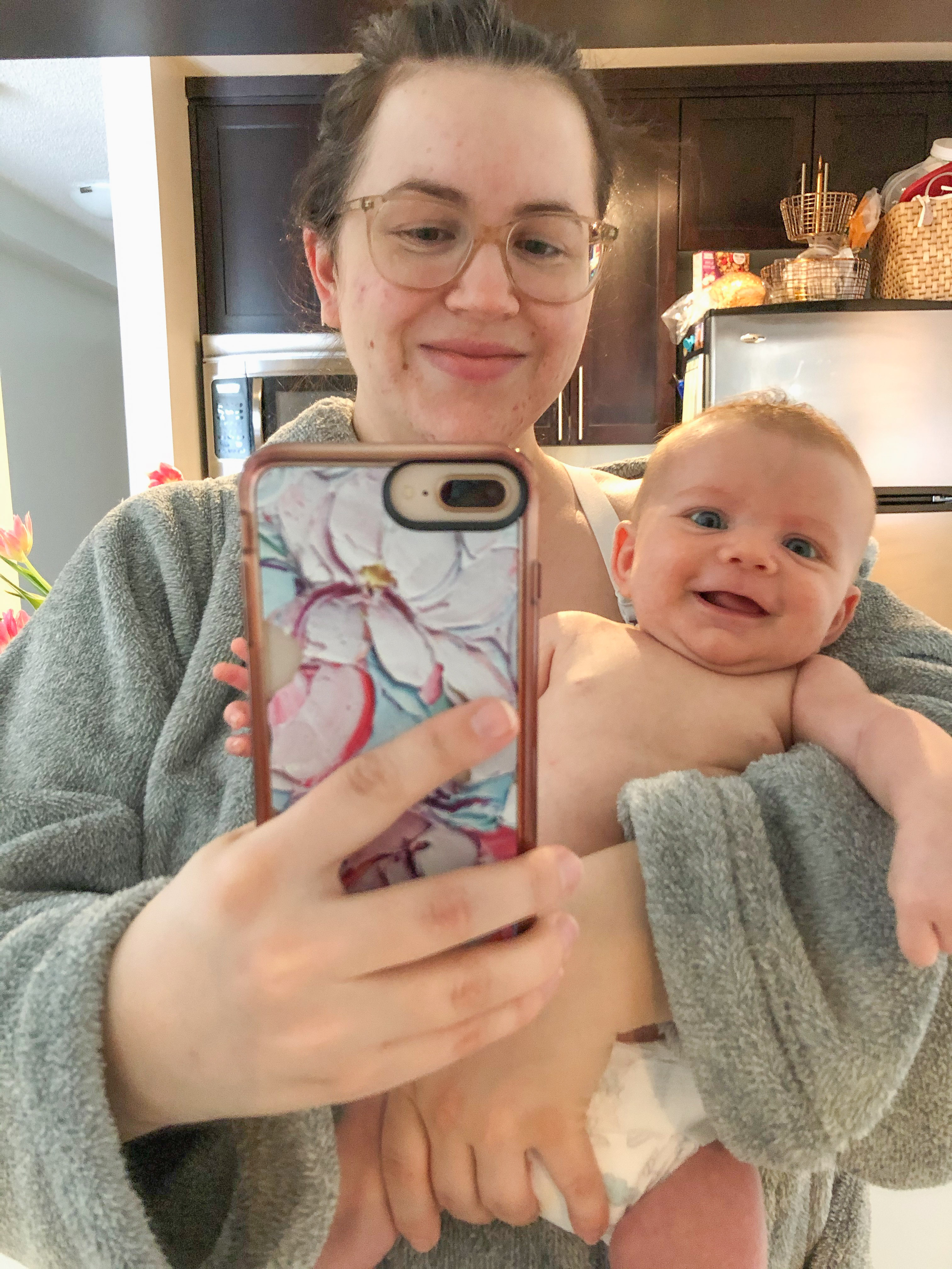 Being able to sleep longer stretches has been amazing for my physical and mental health. Sure I still have a meltdown every once in a while, hormones are a bitch! But with Curtis helping out with feedings and also household chores has been great.