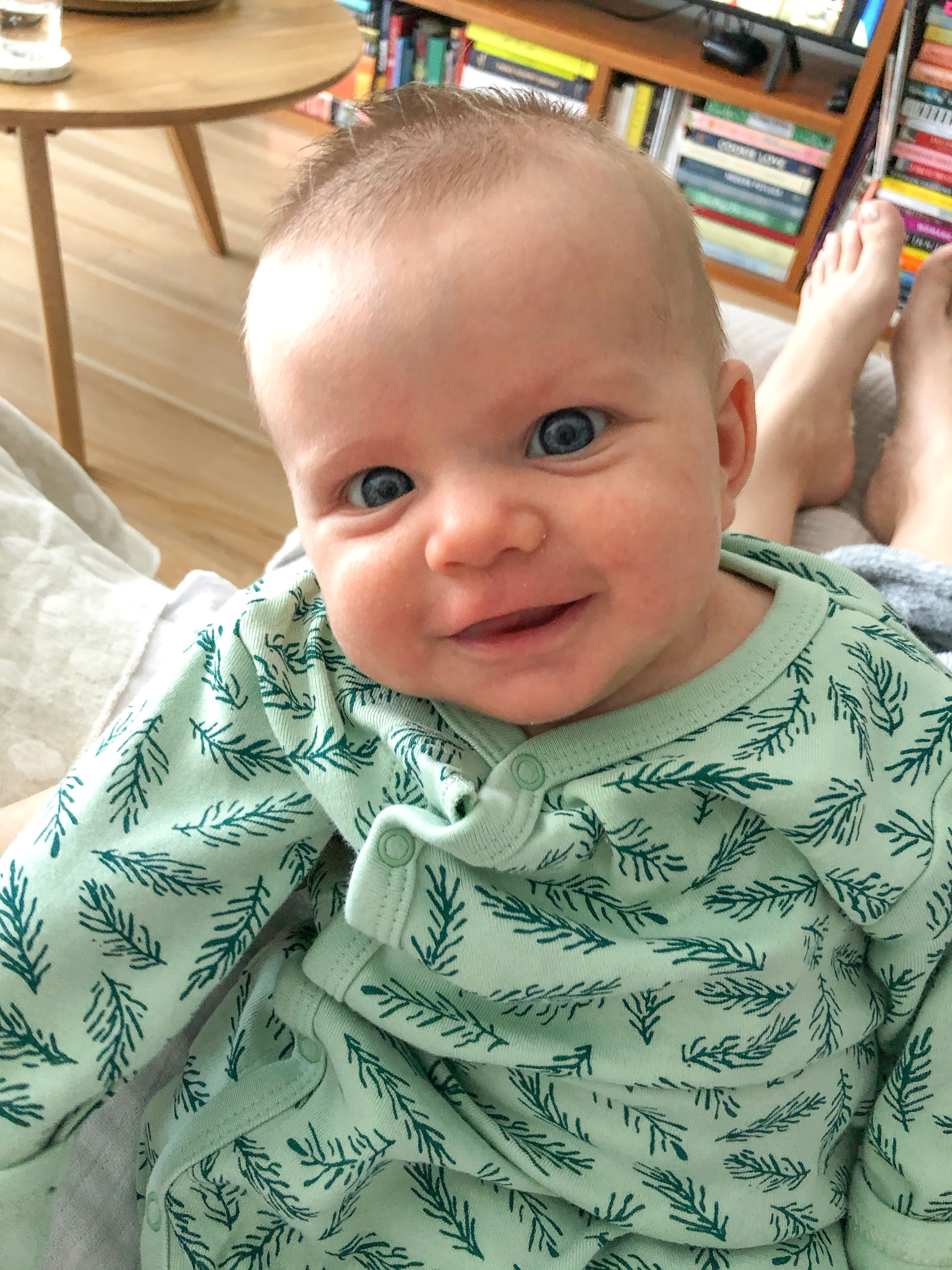 Rowan now coos at us, she smiles all the time and is quite chatty! She also has grown a lot more, she now weighs almost 12 lbs, got longer and can now grab at things. She still loves to eat, we are now pumping and breastfeeding, so Curtis can give her a bottle during the night and we just have an extra supply for outings or just in case she is cluster feeding. She eats about 5 oz a feeding, so around 32-37 oz a day I’d say on average.
