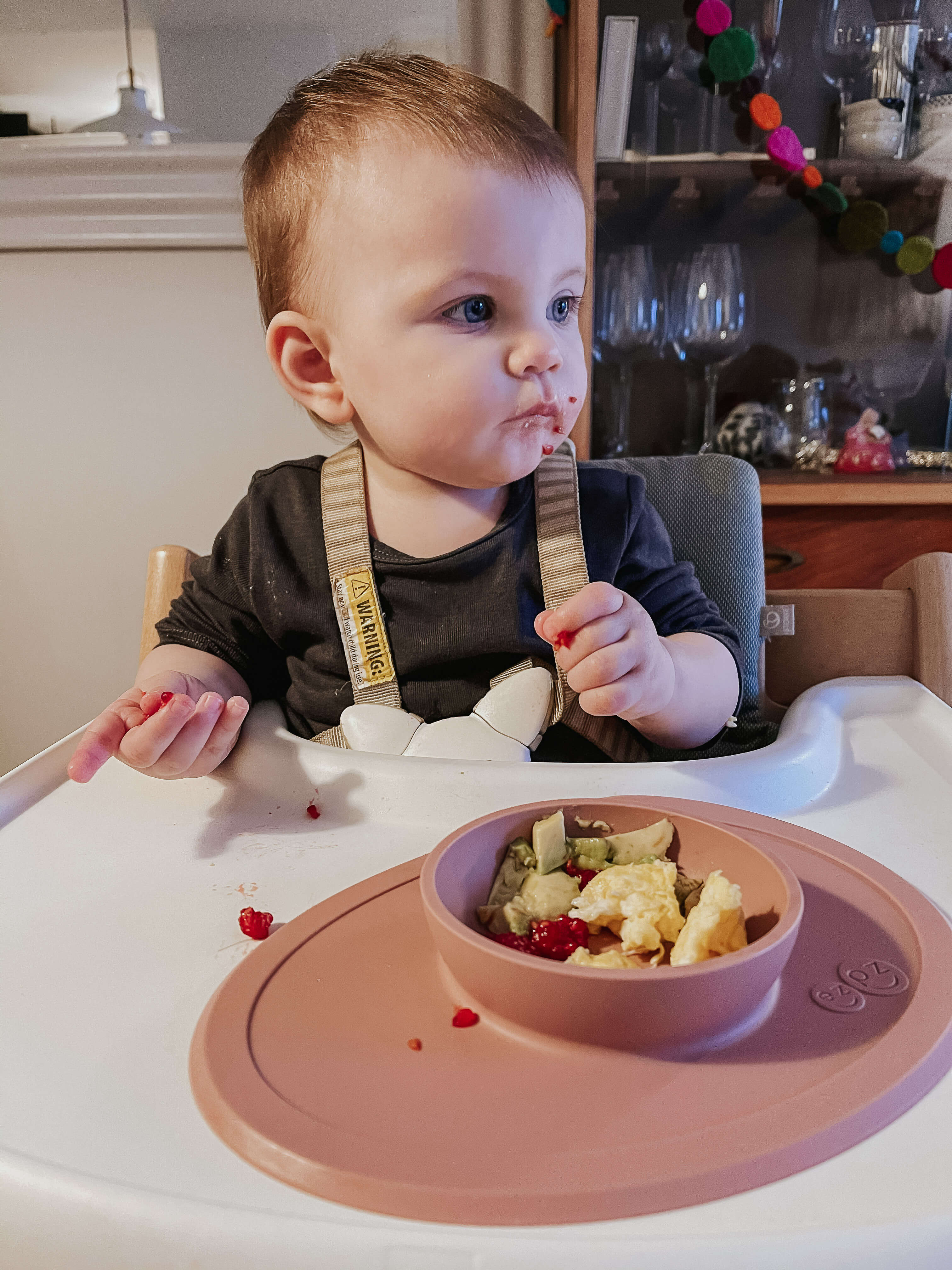 Whenever she hears that we’re eating or I open the fridge, she walks as quickly as she can over to investigate. Oh and she now only wants to hold her bottle by herself. No assistance is required, same with her eating, likes to feed herself. And she is still eating everything, except hummus. I think the texture of hummus throws her off but we keep trying to add it here and there. Rowan is in the 97% for height and weight! She is now eating 3 full meals a day, an occasional snack from whatever Mom and Dad are eating, and gets to practice drinking from an open cup. She does amazing at that by the way, barely spills her drink on her.