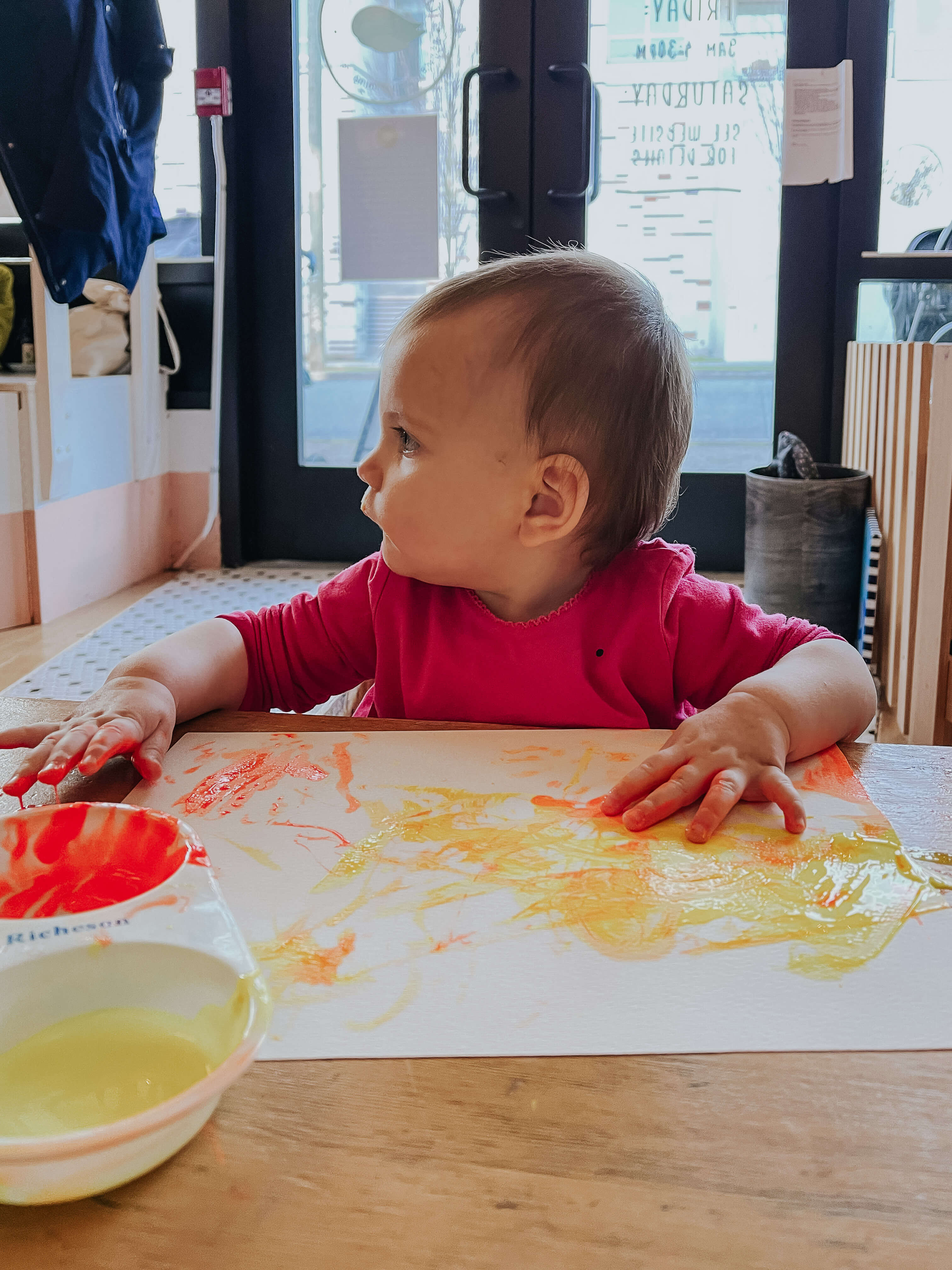 Rowan also has started to climb on objects, the couch, ottoman, other bits at her art class, it’s been interesting to say the least. I can’t take my eyes off of her. She is a determined little girl with the need for exploration and adventure, if she isn’t moving by herself she gets mad.