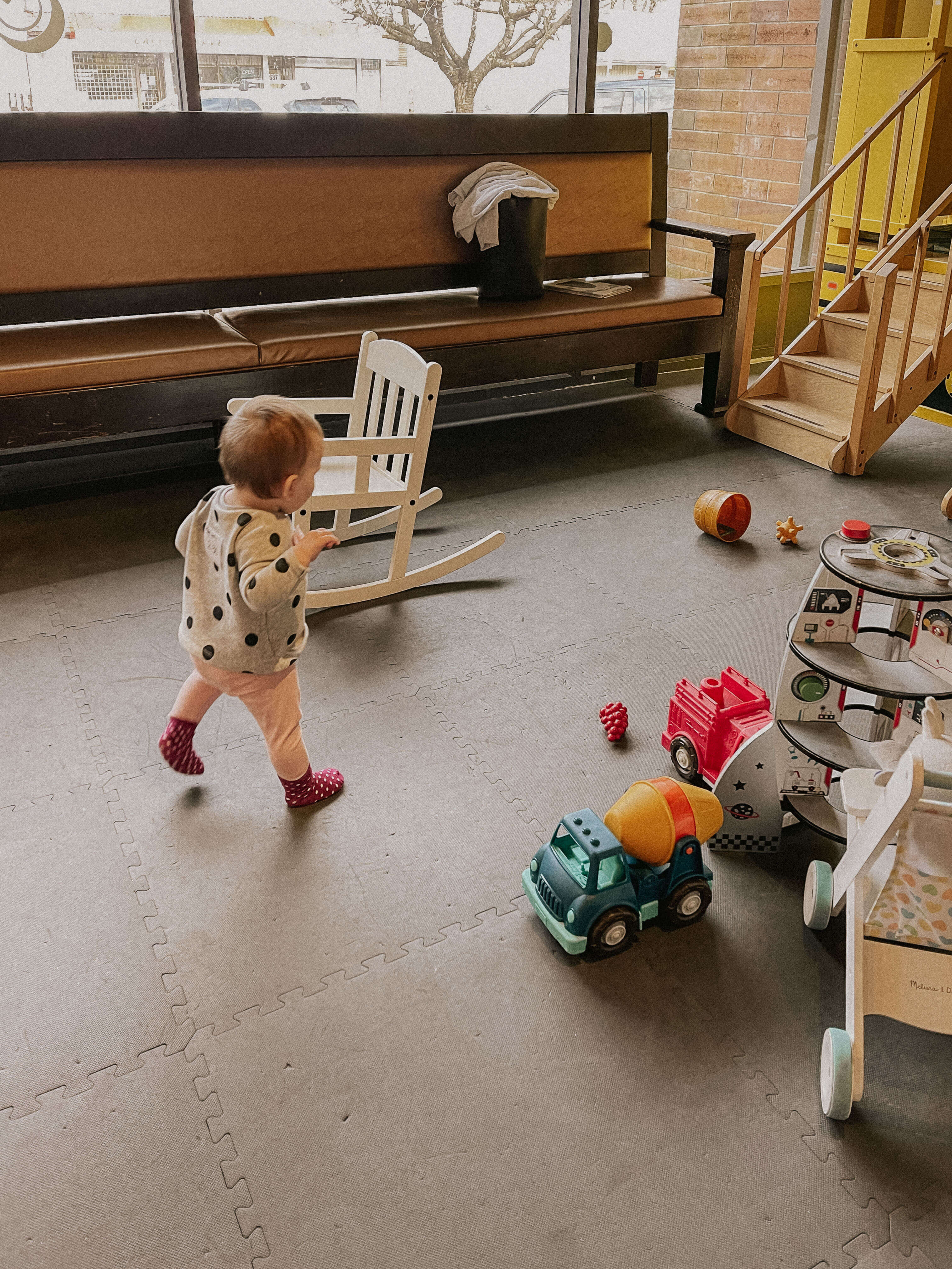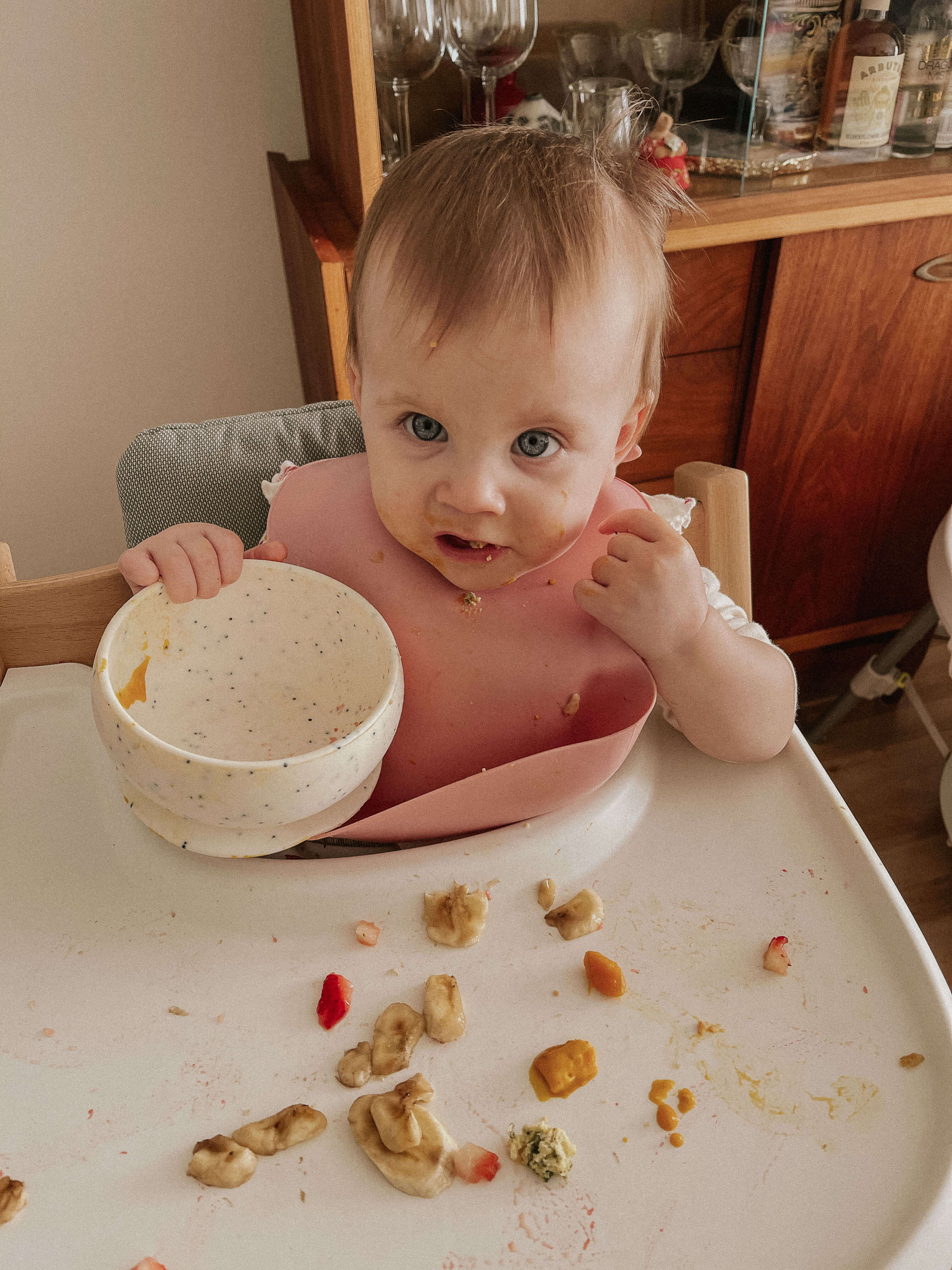 And breastfeeding update is that we are still nursing 1-2x a day, pumping bottles, and also supplementing with formula and I’m ok with that. As long as she is fed and I have less anxiety about nursing and making sure I pump on time is better for me. Plus her eating three solid meals helps out too because she is requiring fewer bottles, she just doesn’t want as many anymore. I’m going to try to get to one-year breastfeeding, as long as my milk supply stays, and then wean her off. I suspect it won’t be a problem because she isn’t the type to come up and tug at my boobs looking for milk.