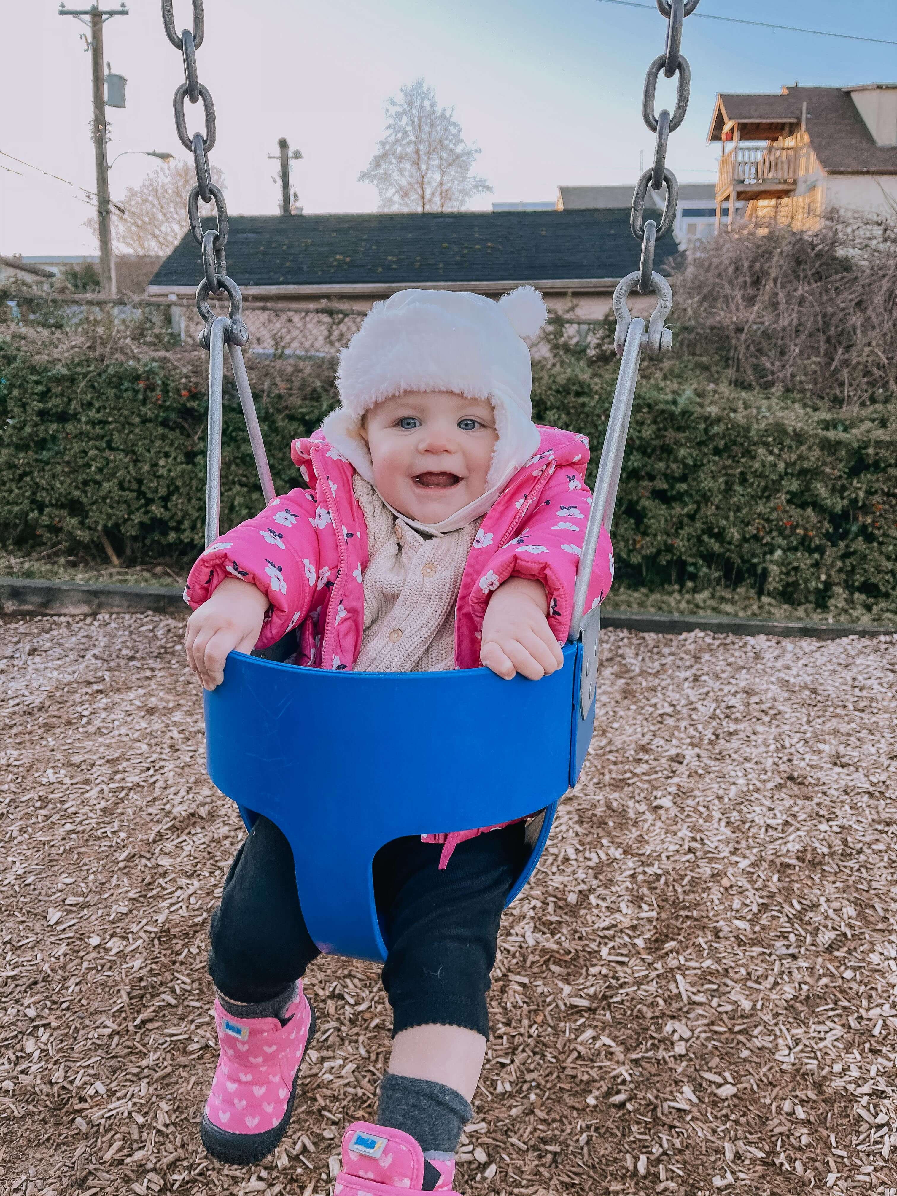 Rowan has grown by leaps and bounds this past month, maybe more than any other month! I feel like I always say that, but this time it’s true. She started WALKING just days after I wrote her last update before Christmas. She just walks so fast around the house, park, anywhere she can walk, she wants to! And she can get up without assistance too now. I spend most of my daytime hours running after her, we both must burn so many calories that way.
