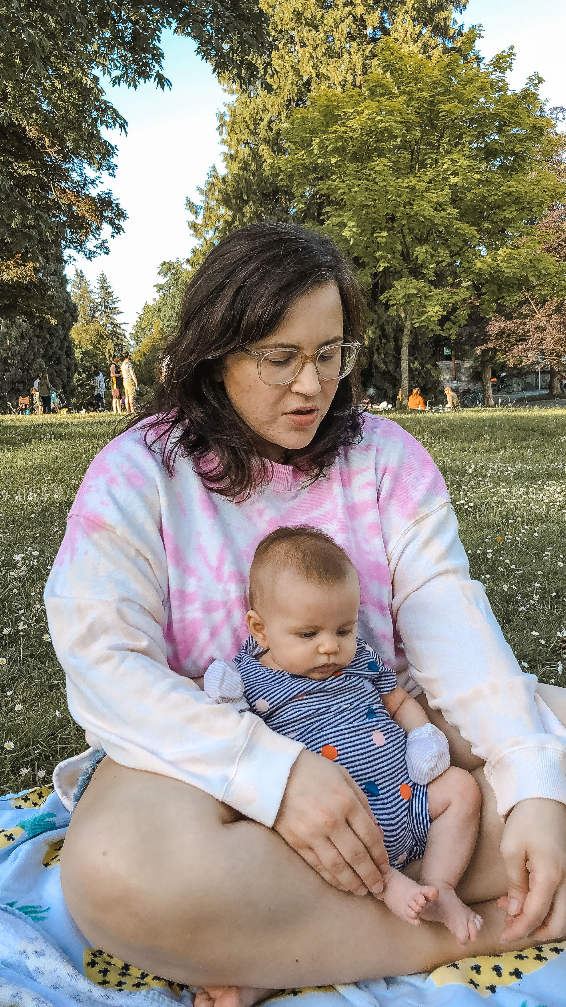 With the weather getting nicer, we’ve been trying to do more outdoor activities, like long walks around our neighbourhood, lunches at the park, sitting at a patio if it’s not busy. We hope to bring her to a warm lake this summer so she can dip her toes in the water and make some memories for her. Rowan adores bath time, loves car rides, playing on the floor either on her tummy or back, and overall an easy baby.