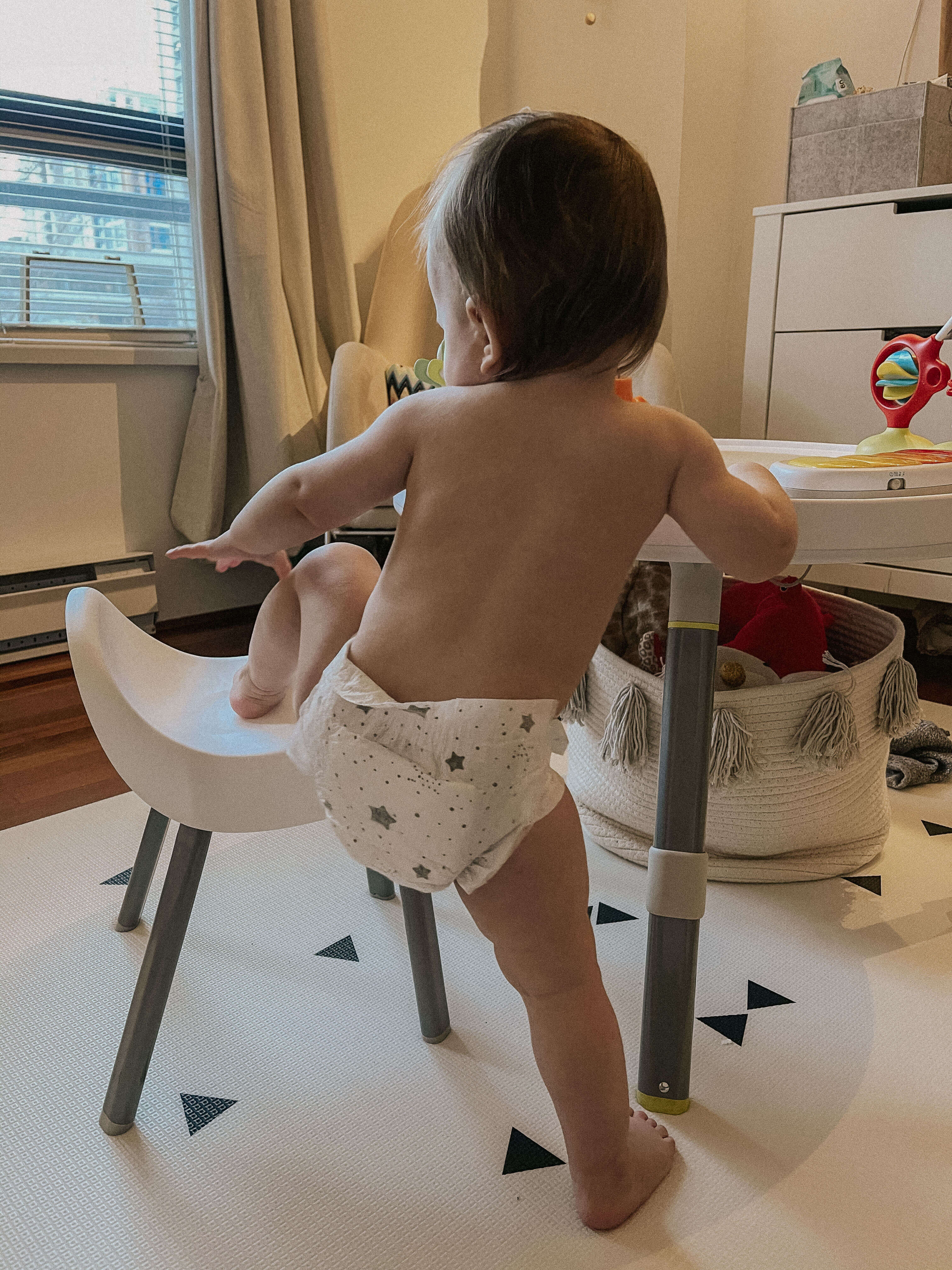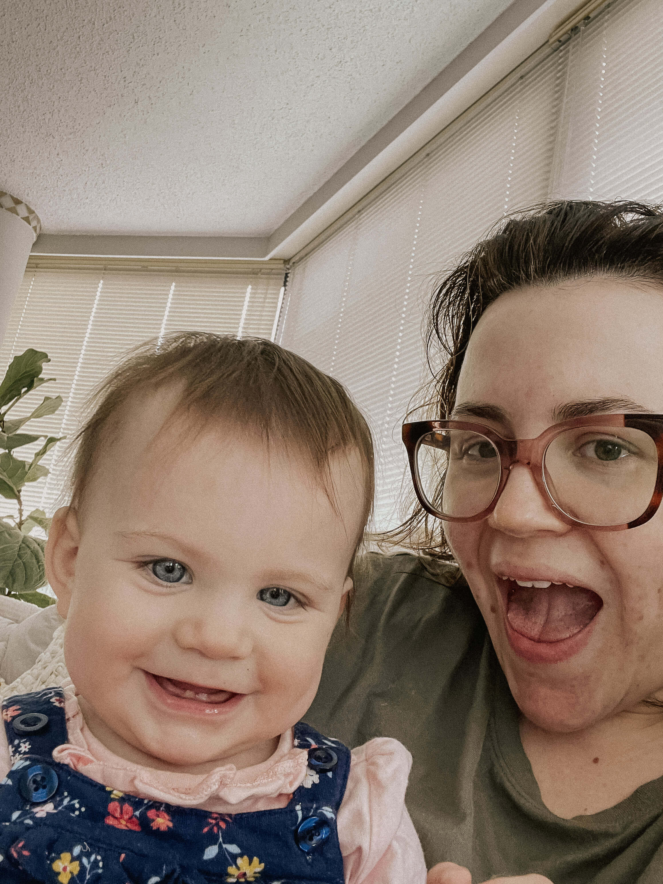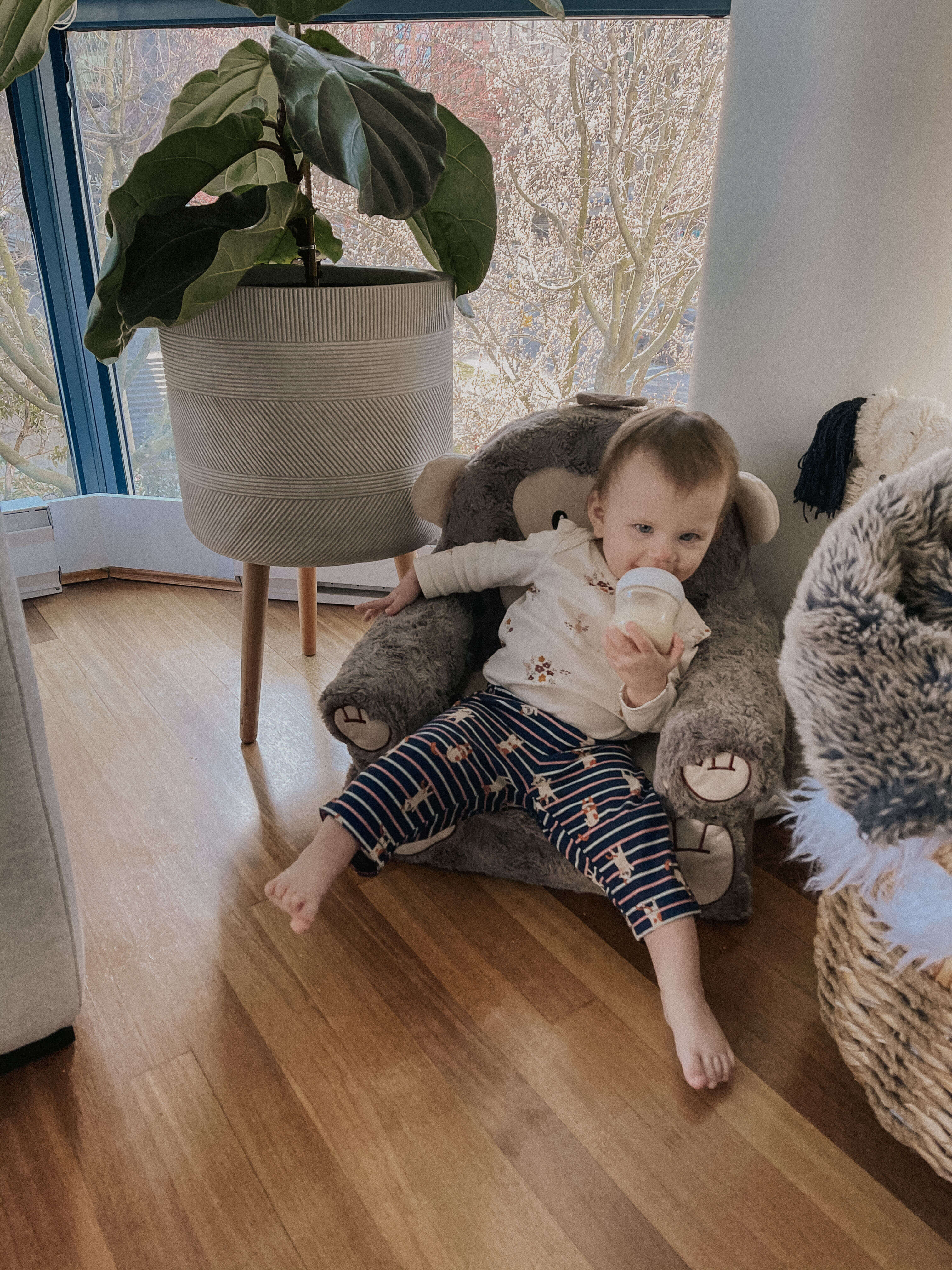 She truly is a happy, little girl! Loves to play, really good at playing independently, and can get on and off the couch with ease. Also moves her little chair around the living area to each window to look out at. With a bottle, just chilling in this chair watching people walk by. She knows certain words and phrases and listens to you too. So she will follow me to the bedroom if I ask her, also knows snacks and mealtimes, knows her bedtime routine, to pull her arms through a shirt, and mimics us reallllll well. Just so proud of how far she’s come in a year! I’m sure this next one will be really busy for us.