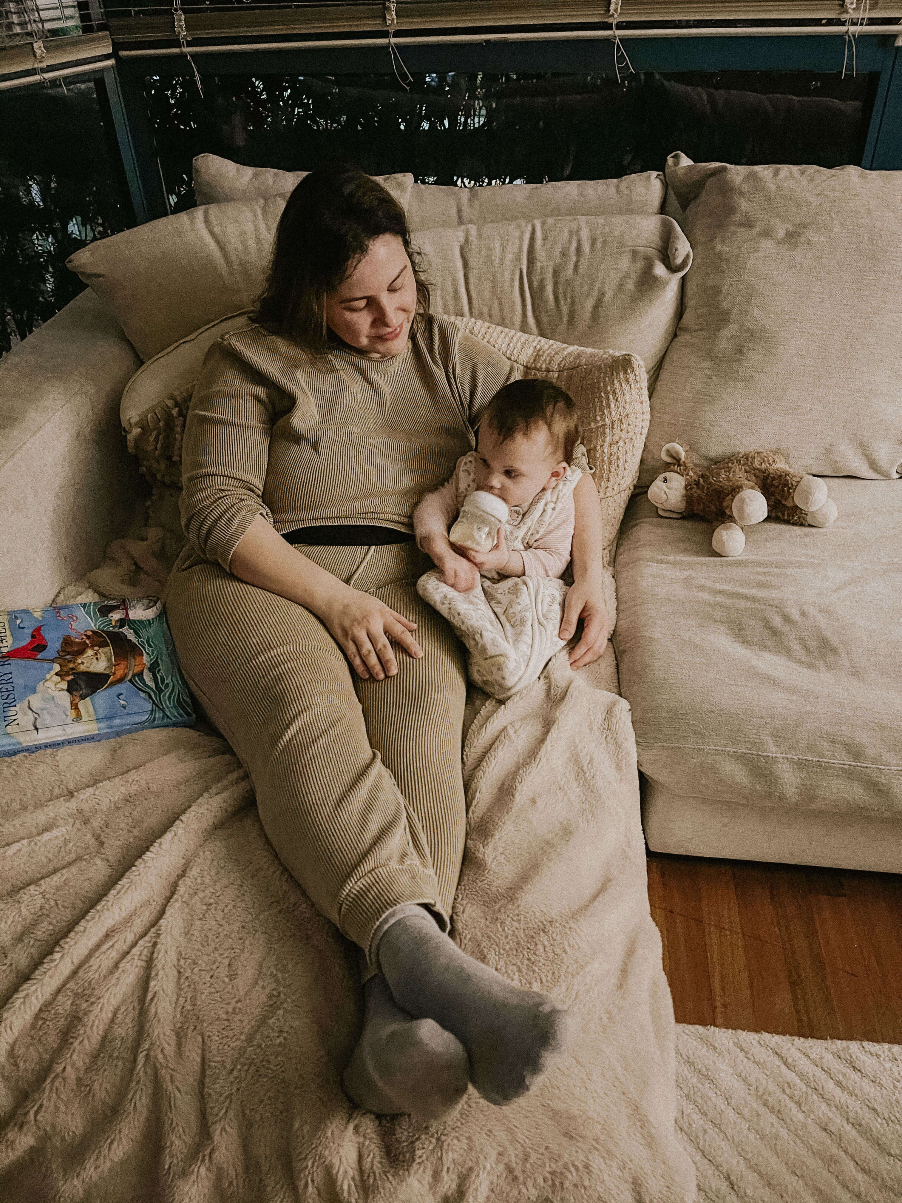 She’s been sleeping really well at night, most times through the night. And she goes down for bed really easily too, since she knows her routine now. We are transitioning to cow’s milk this week, she already has no issues with cold breastmilk or formula or water, so I can’t see this being an issue. This will mean I will wean myself off of pumping and will eventually have all that time back during the day I spend doing it.