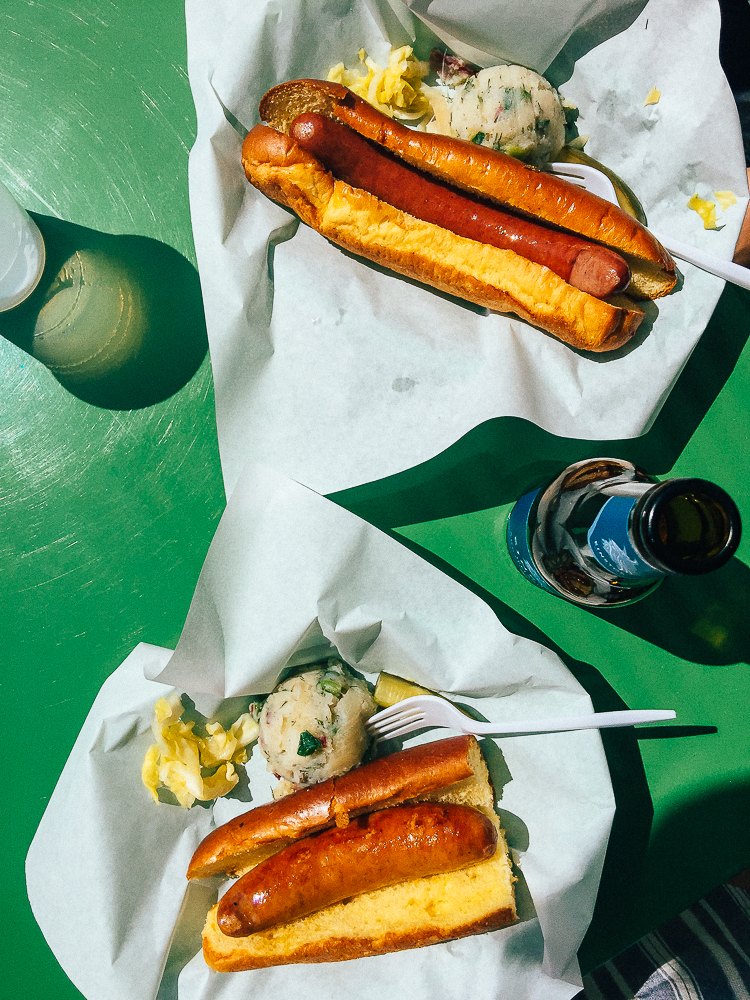Frank in Bun is a cute little quirky place that is perfect for lunch! Tasty hot dogs and hot dog wallpaper complete the experience. They also serve up vegan dogs and german potato salad.