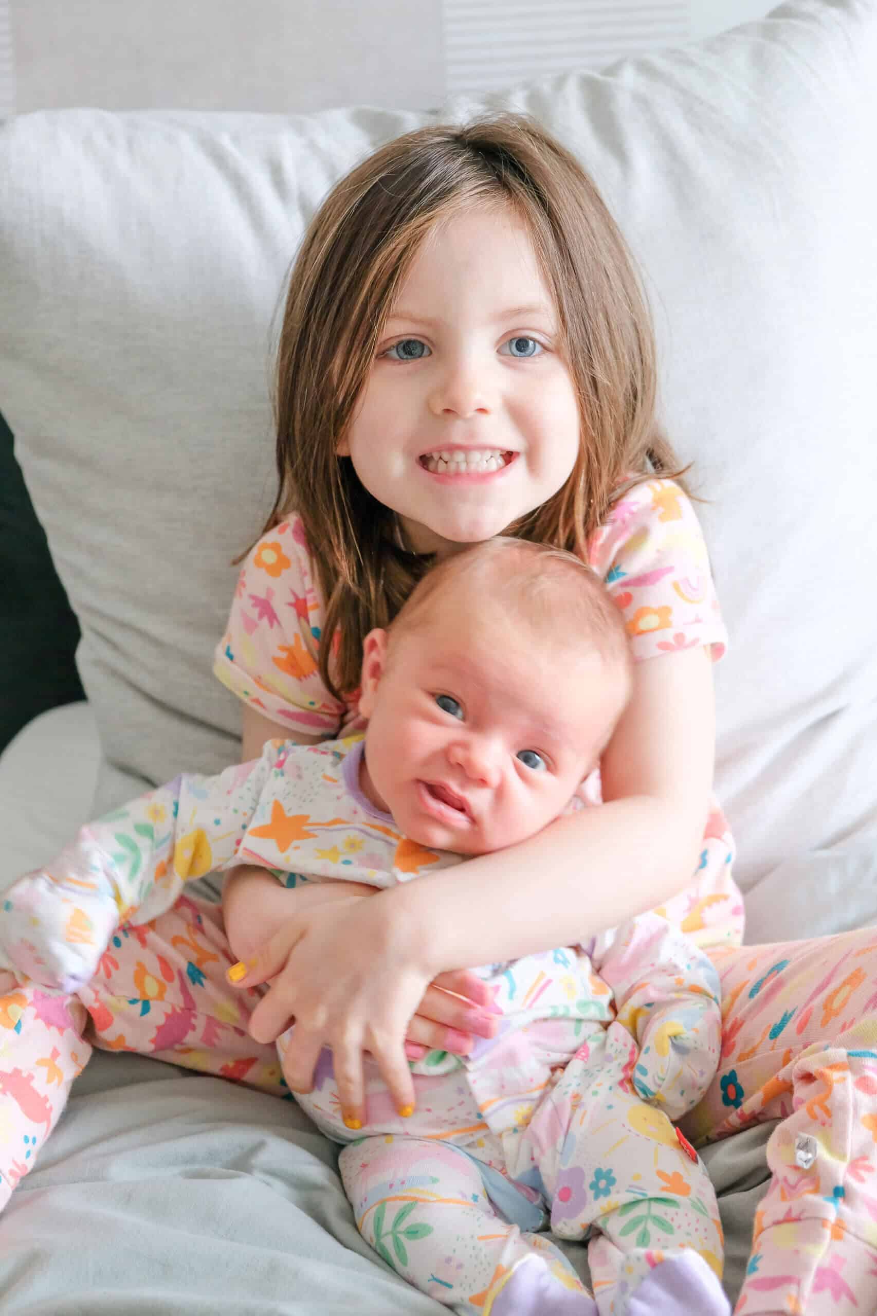 Rowan has been so excited to be a big sister! Helps out! Sure, she has her jealous periods, I get it, she’s not the center of attention anymore, but she’s always excited to see Isabella every day. She’s been back at daycare for the past few weeks, sees her friends, and in a routine. Which I feel has helped out.