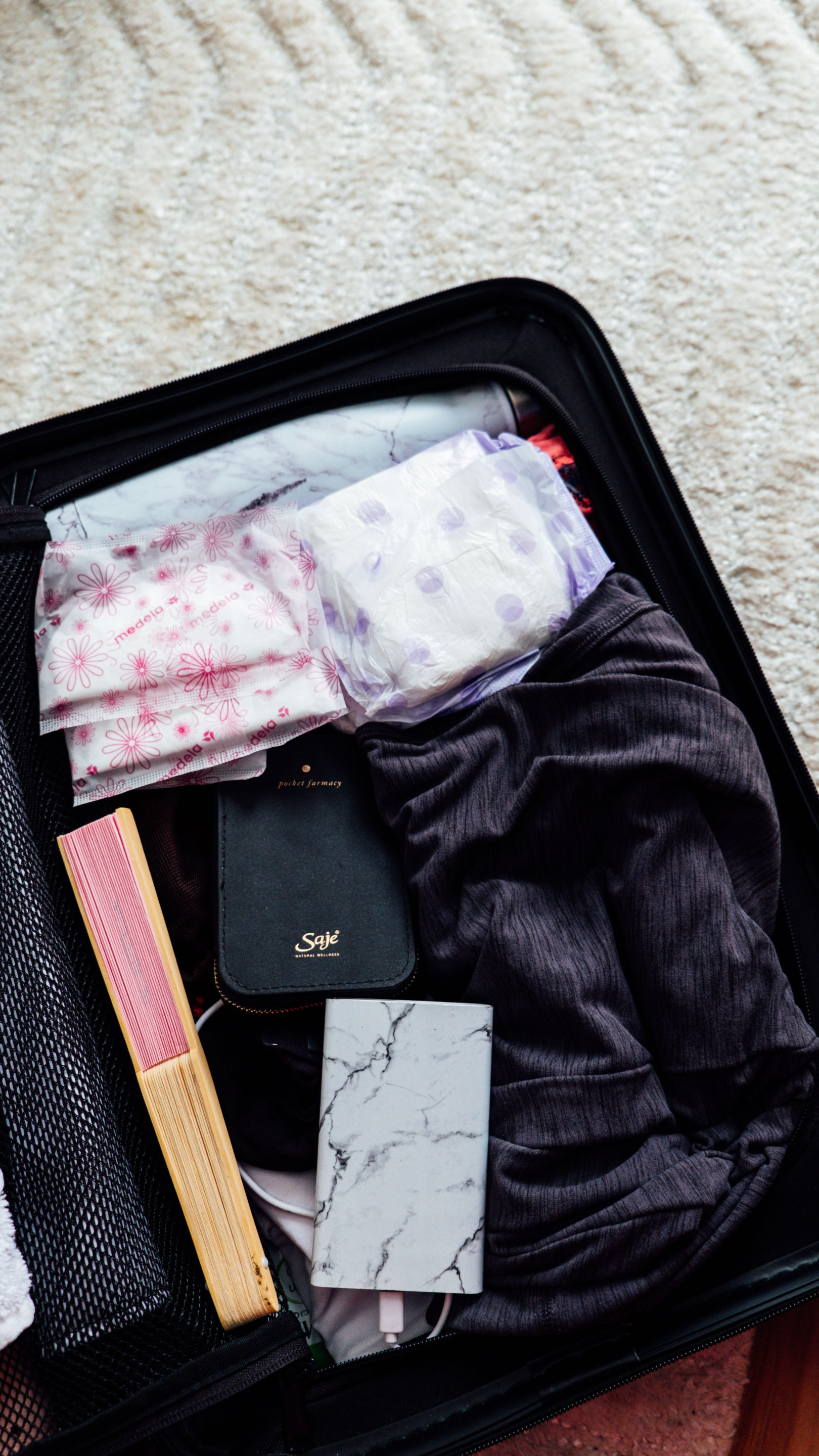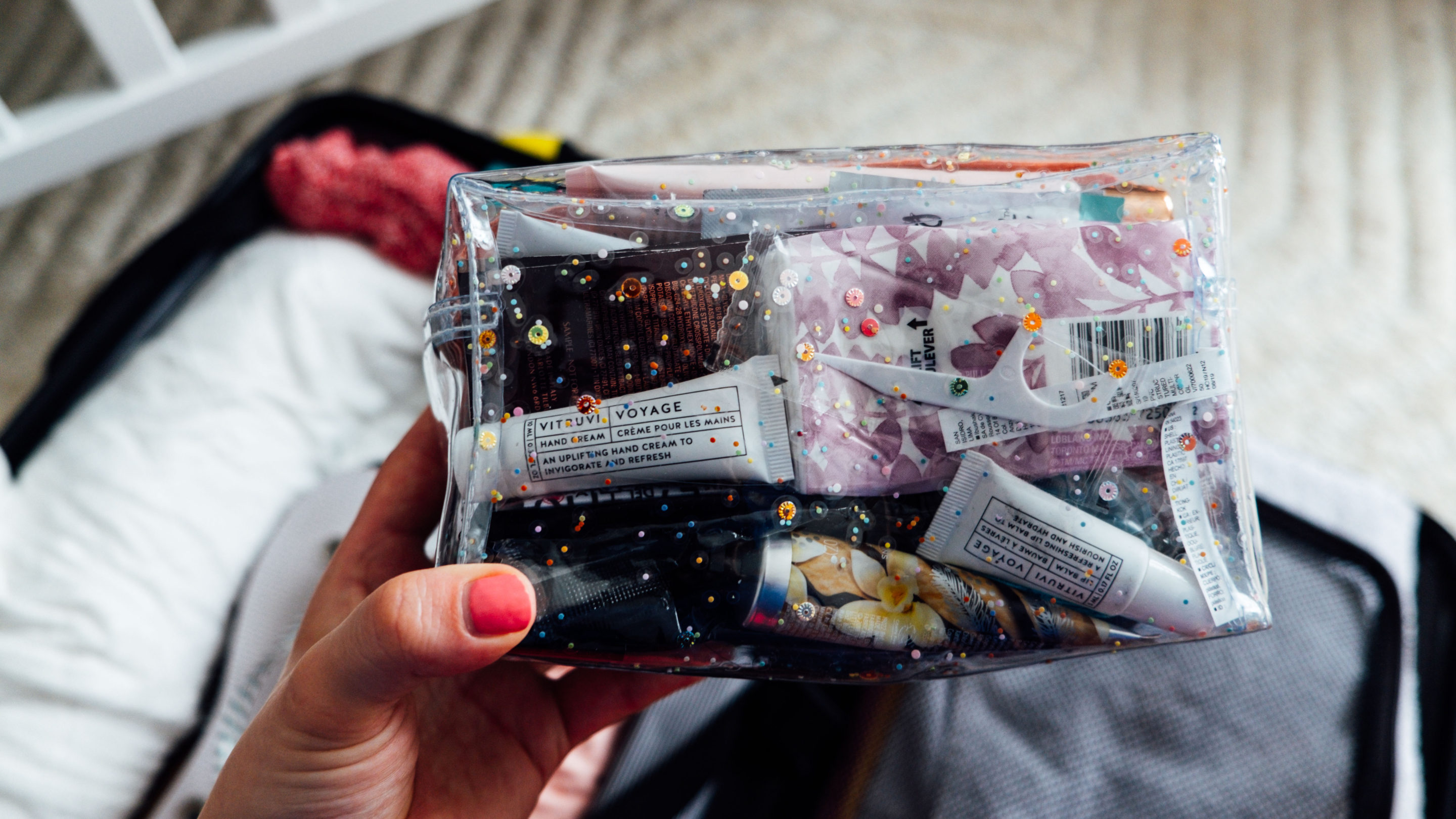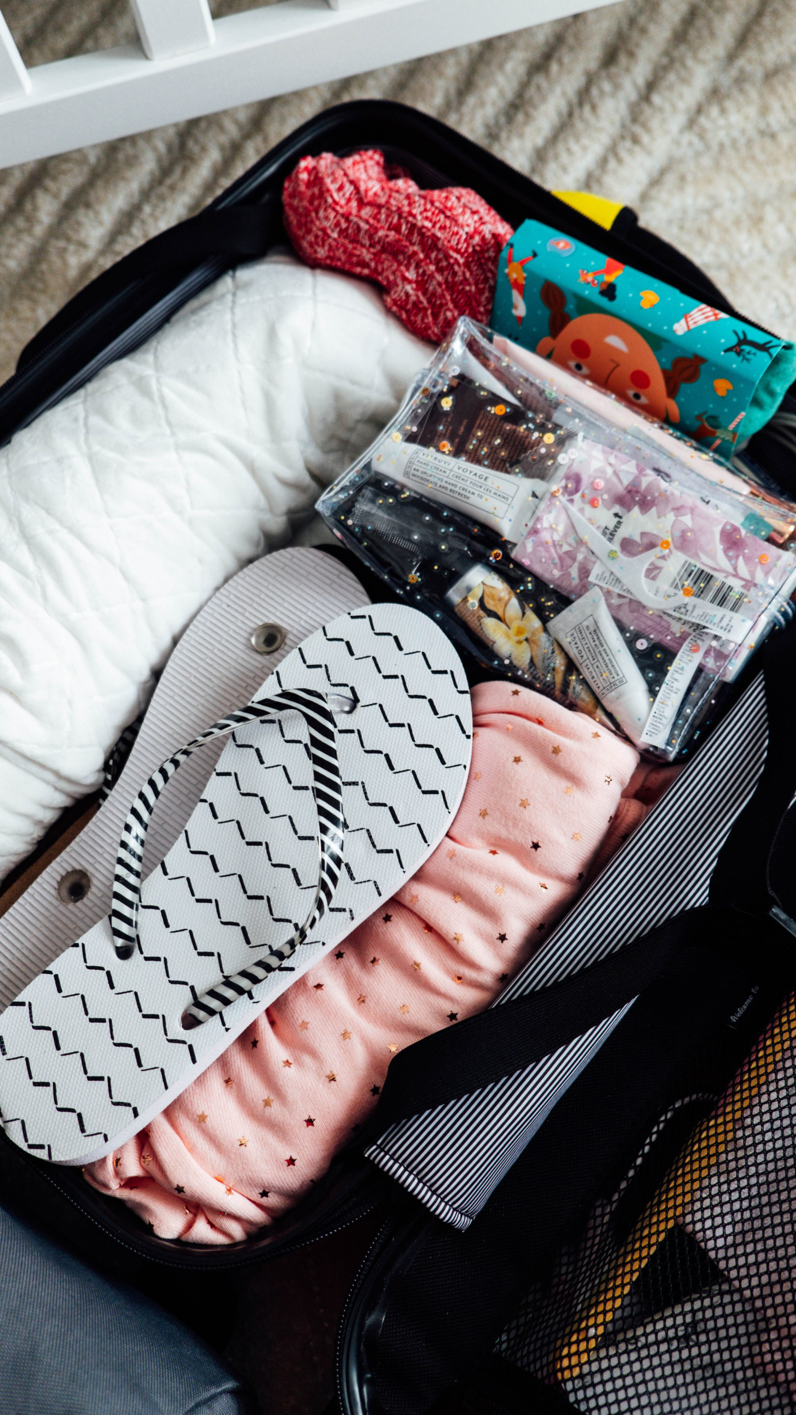 I went minimal on this, packed shampoo, hair ties, face wash, and wipes, body lotion, deodorant, face moisturizer, tinted moisturizer, and concealer, hairbrush, hand cream, lip balm and nipple cream for breastfeeding.